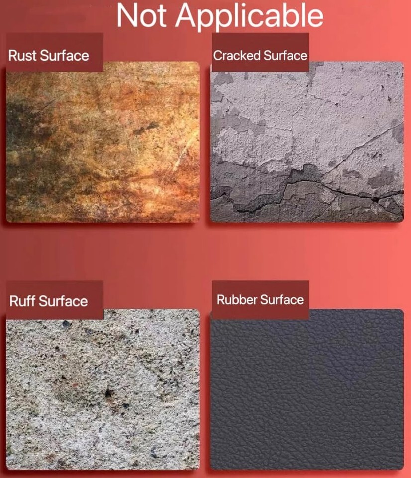 1. Please Note: it is not recommended to use it on unstable Paint Wallsrough walls, powdery walls, wet surfaces or uneven surfaces.our tape is very sticky,avoid causing the wall surfaces to fall off when removing tape.