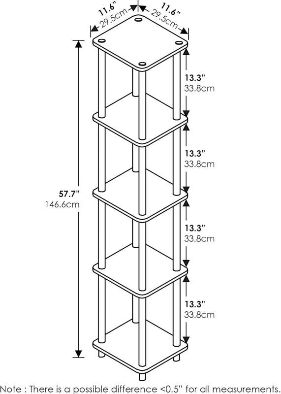 Store New Arrivals Add to Favorite View Feedback Contact Turn-N-Tube 5-Tier Corner Square Rack Display Shelf, Round, Espresso/Bl Description Item model number 99132EX/BK Style 19602000 Number of Items 1 Number of pieces 1 Warranty Description 1 year limited manufacturer. Shelf Thickness 0.5 Inches Shelf Type Tiered Shelf Shape Rectangular Unit Count 1.0 Count Room Type Bathroom, Living Room, Bedroom Weight capacity Maximum weight: 15 Pounds Assembly Required Yes Batteries required No Min Required Door Width 11.6 Inches Installation Type Freestanding Model Name Turn-N-Tube Finish Type Black Specific Uses For Product Toiletries, Decorative Items, Clothes, Kitchen Utensils Included Components Shelf Panels, Hardware Pack, Assembly Instruction Age Range (Description) Adult Back Style Backless Fabric Type Manufactured from Wood Item Weight 8.8 pounds Number of Shelves 5 Special Feature Adjustable Weight Limit 15 Pounds Color Espresso/Black Is Discontinued By Manufacturer No Furniture Finish Black Material Engineered Wood, Polyvinyl Cholride Mounting Type Floor Mount Global Trade Identification Number 00736211698810, 39254857646306 Recommended Uses For Product General storage, display, and organization in various rooms Finish types Black Product Dimensions 11.6"D x 11.6"W x 57.7"H Product Care Instructions Wipe with Dry Cloth, Avoid using harsh chemicals. Size Round Tube Manufactured from Wood Simple stylish design comes in multiple color options, is functional and suitable for any room. 5-tier shelving unit, ideal for both storage and display, suitable for books, magazines, or decorative items. Each shelf has a weight capacity of 10 lbs. Rounded edge design prevents potential injuries. Manufactured from high-quality durable composite wood, CARB-compliant composite wood carrying the Programme for the Endorsement of Forest Certification (PEFC) and PVC Tubes. Product Dimensions: 11.6 (D) x 11.6 (W) x 57.7 (H) inches Furinno 5-tier tube display/storage square corner rack is designed to meet the demand of low cost but durable and efficient furniture. It is proven to be the most popular rta furniture due to its functionality, price, and the no hassle assembly. The materials comply with e1 grade particle board for furniture. There is no foul smell of chemicals, durable and it is the most stable particleboard used to make rta furniture. Care instructions: wipe clean with clean damped cloth. Avoid using harsh chemicals. Please contact support@furinno for missing parts, damaged goods, or other questions. We are pleased to send you the replacement part free of charge. Pictures are for illustration purpose. All decor items are not included in this offer. Pictures are for illustration purpose. All decor items are not included in this offer. ABOUT US We offer the best prices around on high quality products. Our E-store includes media such as books, movies, music and games while offering electronics, toys, sporting apparel, clothing, tools, general home, garden items and more. SHIPPING We are always working hard to ensure your package arrives as soon as possible. Please understand that some factors like weather, high postal traffic, and the performance of shipping companies are outside of our control. RETURNS We offer a 30-Day Return Policy on items which you are not completely satisfied with. You have the option for a full-refund or an exchange of the item. PAYMENT We accept PayPal. CONTACT US This page content is yet to come Please ad us to your favorite seller and visit again later Thank You CUSTOMER SATISFACTION We try our very best to make sure every customer is completely satisfied. If there's a problem, message us! We're happy to help.