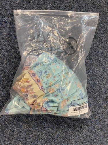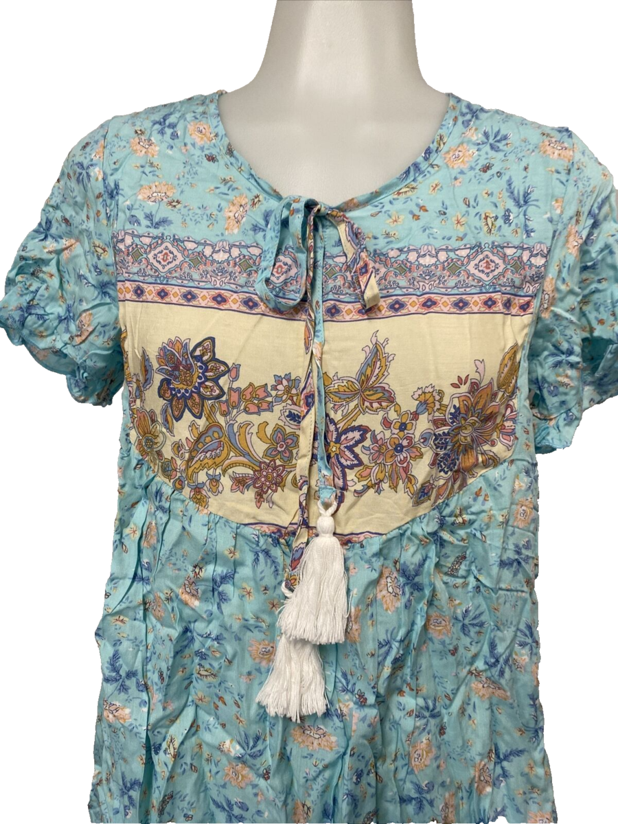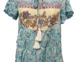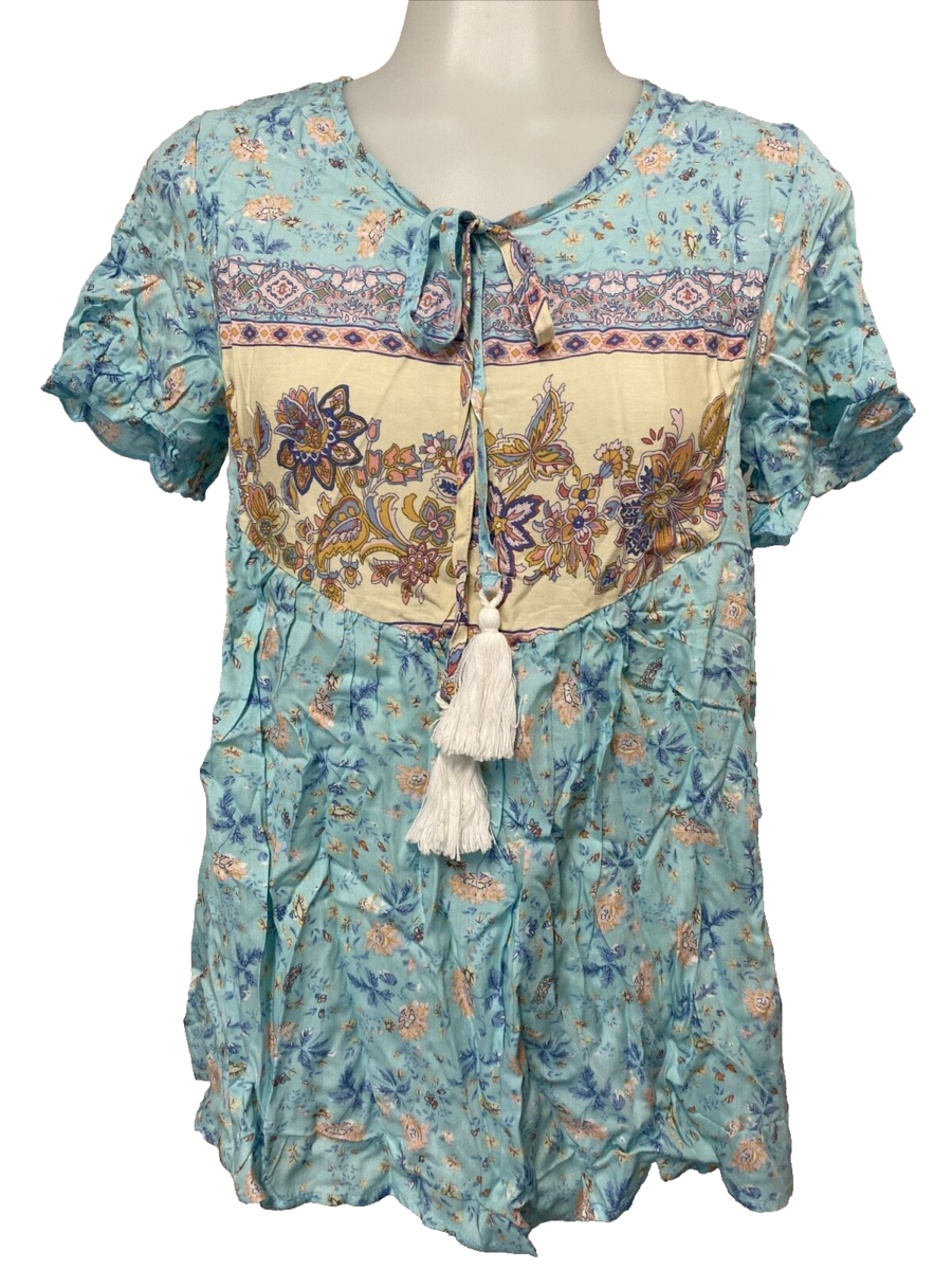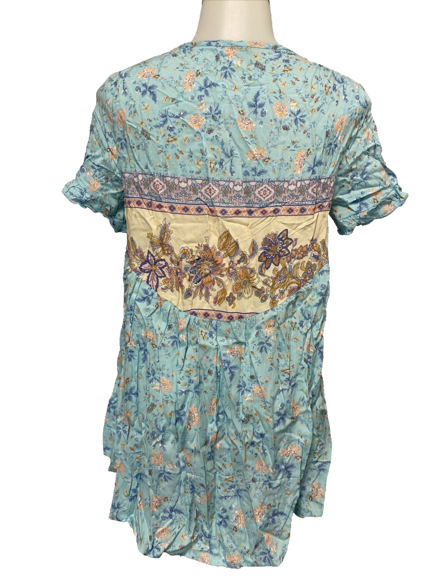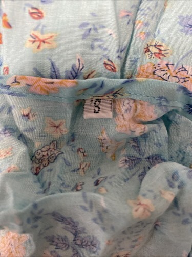 - Turquoise Floral Ruffle Sleeve Notched Neck Top Women's S New