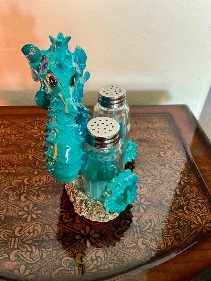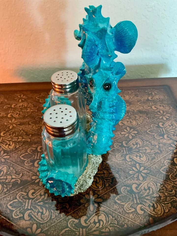 Turquoise Seahorse Salt Pepper Shaker. NIB. Measures 5 3/4? high by 5? wide