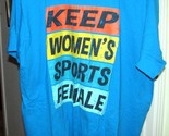 Great Like New Condition on this Size 2XX Tee Shirt that is a solid turquoise color with "KEEP WOMEN'S SPORTS FEMALE" in Black across the front. It has already been washed so it will not shrink. Has short sleeves, and a crew neck.