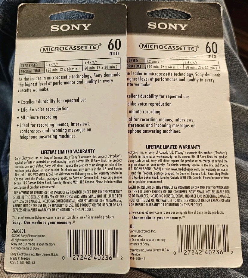 - Two (2) 3 Pack Sony MC-60 Microcassette Blank Cassette Tape 60 Minute Brand New