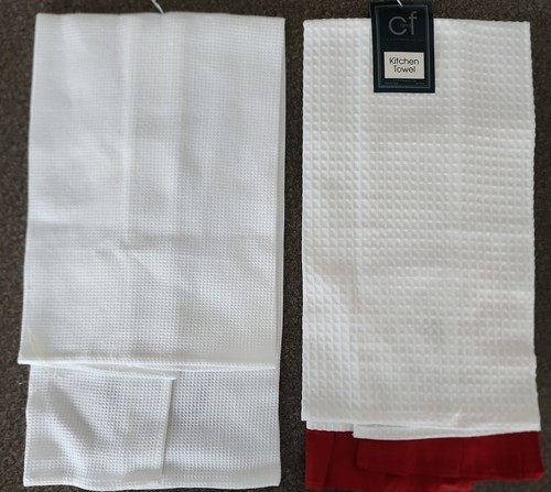 Kitchen towels have a white in color background with a waffle pattern