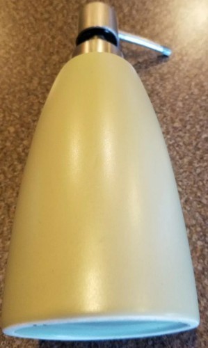 Soap dispenser measures approximately 7.75" tall 3" diameter