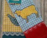 One (1) towel is a cow design with a checkered blue white pattern red bottom border