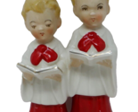 Up for sale is a vintage figurine of Two Choir Boys with Hymnals in Red and White Robes. This measures approx. 5.5" tall with some wear.