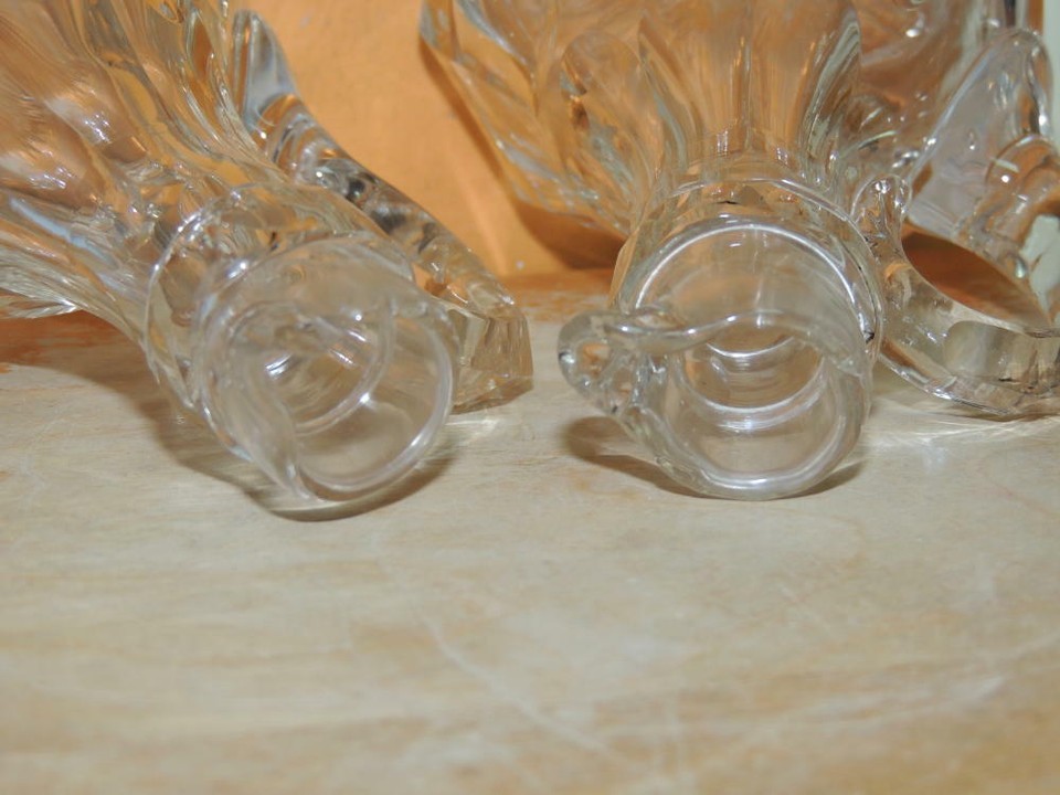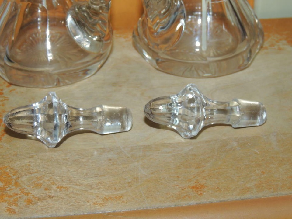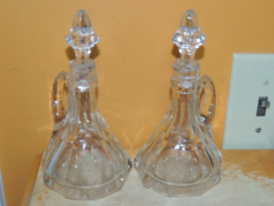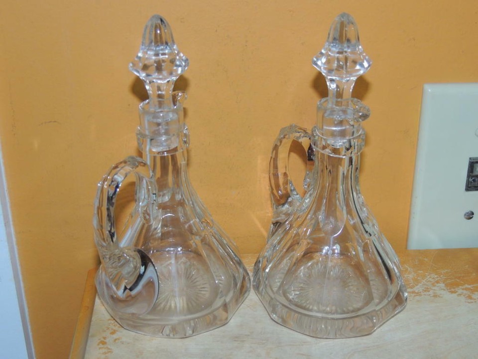 - Two Cut Glass Cruet 7" ummarked panel / paneled antique vintage crystal