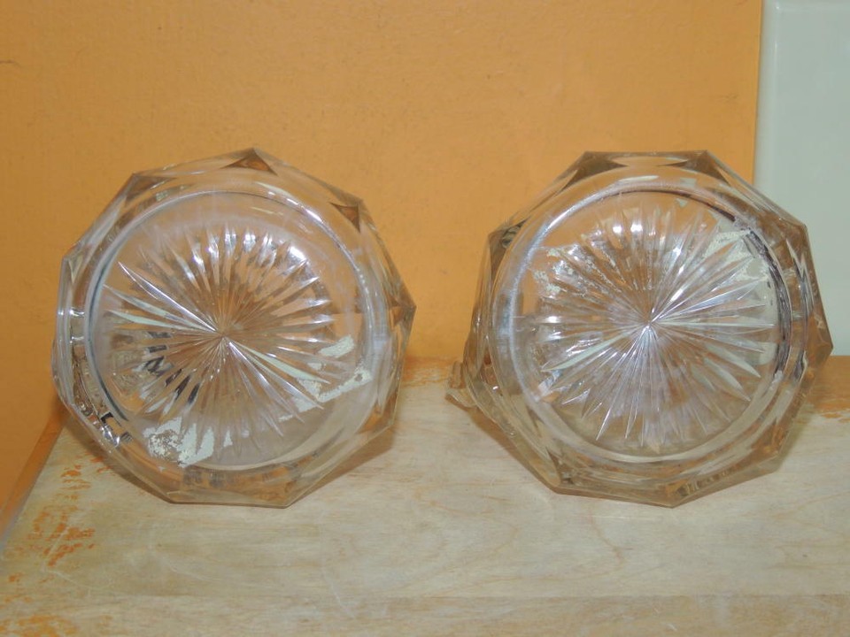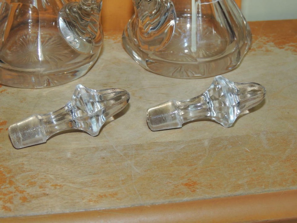 TWO CUT GLASS CRUETS - PLEASE EXAMINE PHOTOS CLOSELY