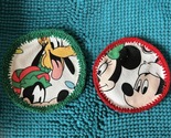 You get these two hotpads.. not to be used as potholders.. top is a microfiber towel and botton is felt and edged in glitter Christmas Yarn. the first one is 6 1/2 inches wide.. the second is 7 1/2 inches wide..