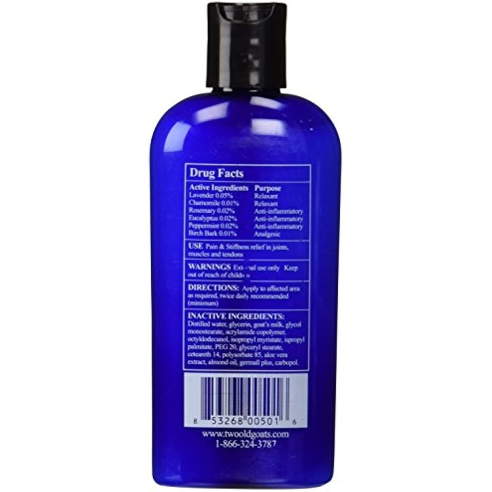Two Old Goats Arthritis and Fibromyalgia Essential Lotion is ready to tackle your toughest aches and pains caused by swelling due to arthritis, fibromyalgia, gout or injury. The goat's milk base carries a natural blend of 6 Essential Oils that go deep into your joints and muscles. German Chamomile, Lavender, Rosemary, Peppermint, Eucalyptus and Birch Bark work together as both an anti-inflammatory and an analgesic. Begin feeling relief instantly, while daily applications have a cumulative effect.