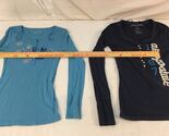 - Two Womens Aéropostale LIGHT & DARK Blue Large Stretch LONG SLEEVE BUTTON SHIRTS