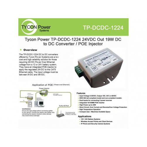 - Tycon TP-DCDC-1224 9-36VDC IN 24VDC OUT 18-24W DC TO DC CON
