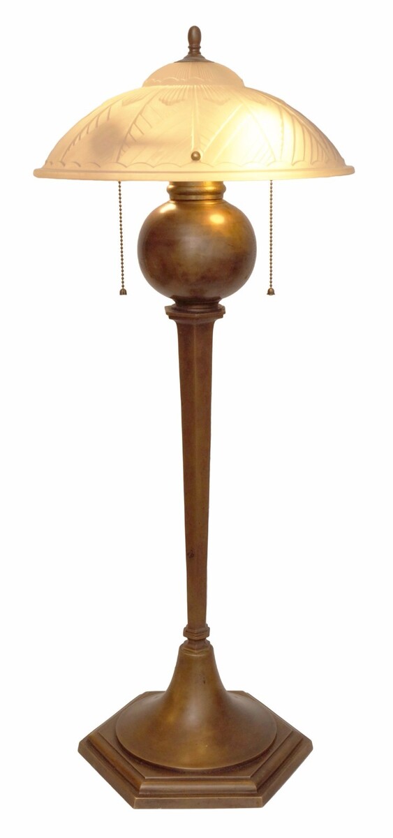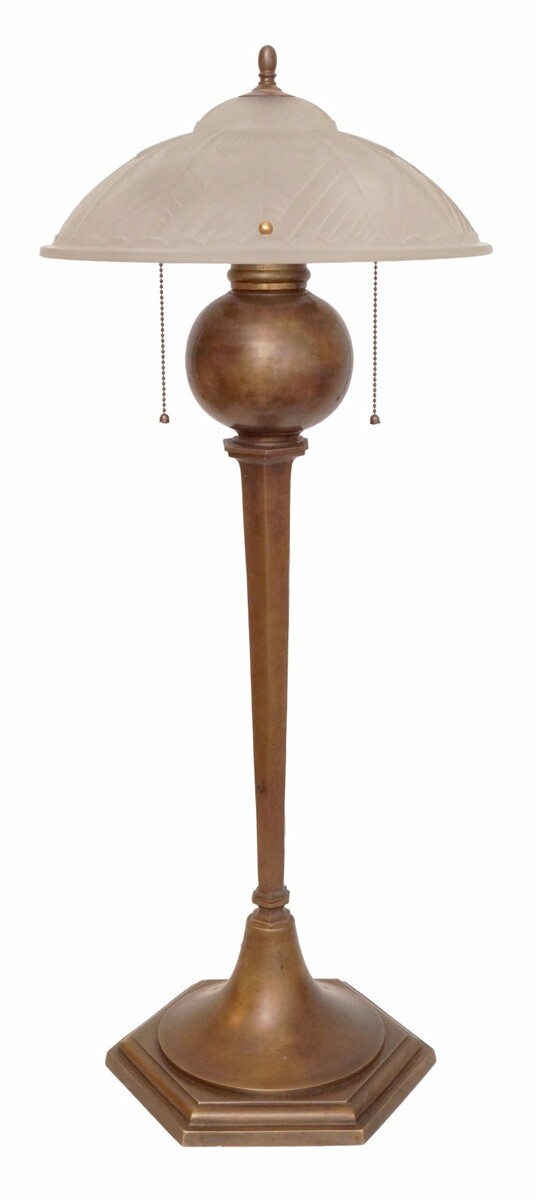 Elegant Art Nouveau Type Deco Brass Lamp " cross Mountain " Table Banker's