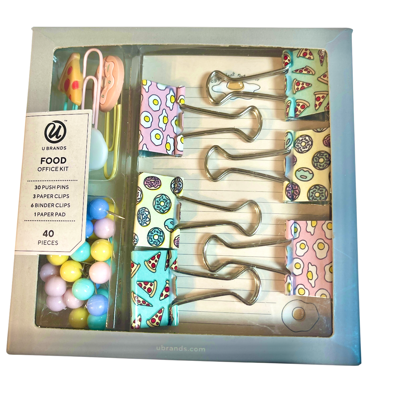 U Brands Office Kit 40 Pieces Food Themed Accessories Clips Push Pins Paper Pad