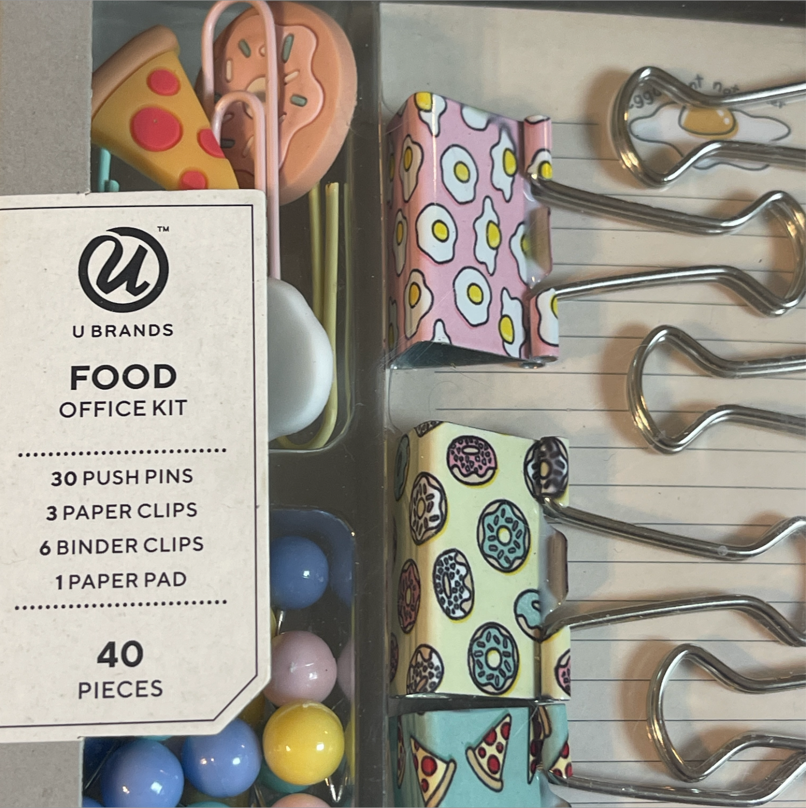 - U Brands Office Kit 40 Pieces Food Themed Accessories Clips Push Pins Paper Pad