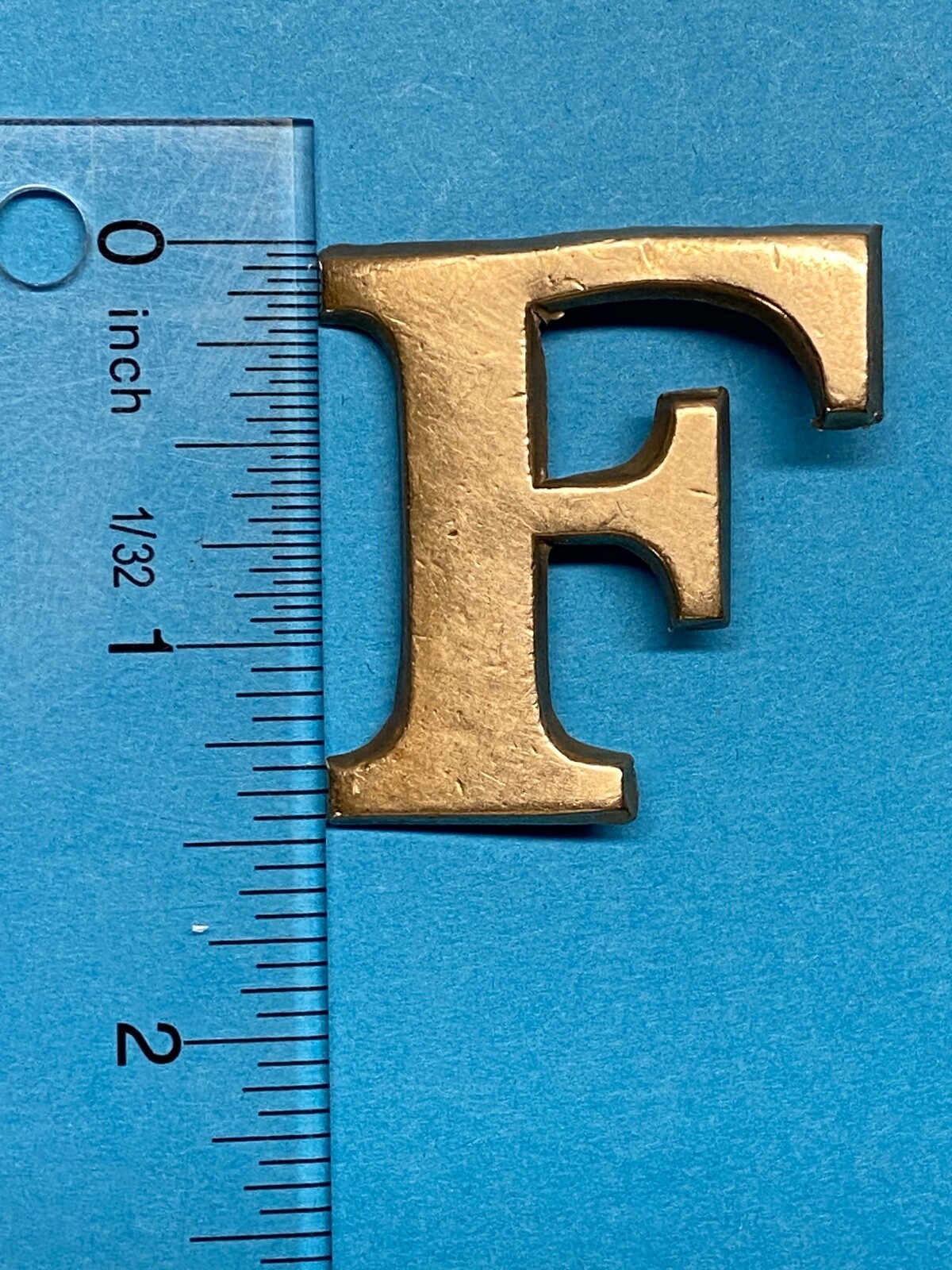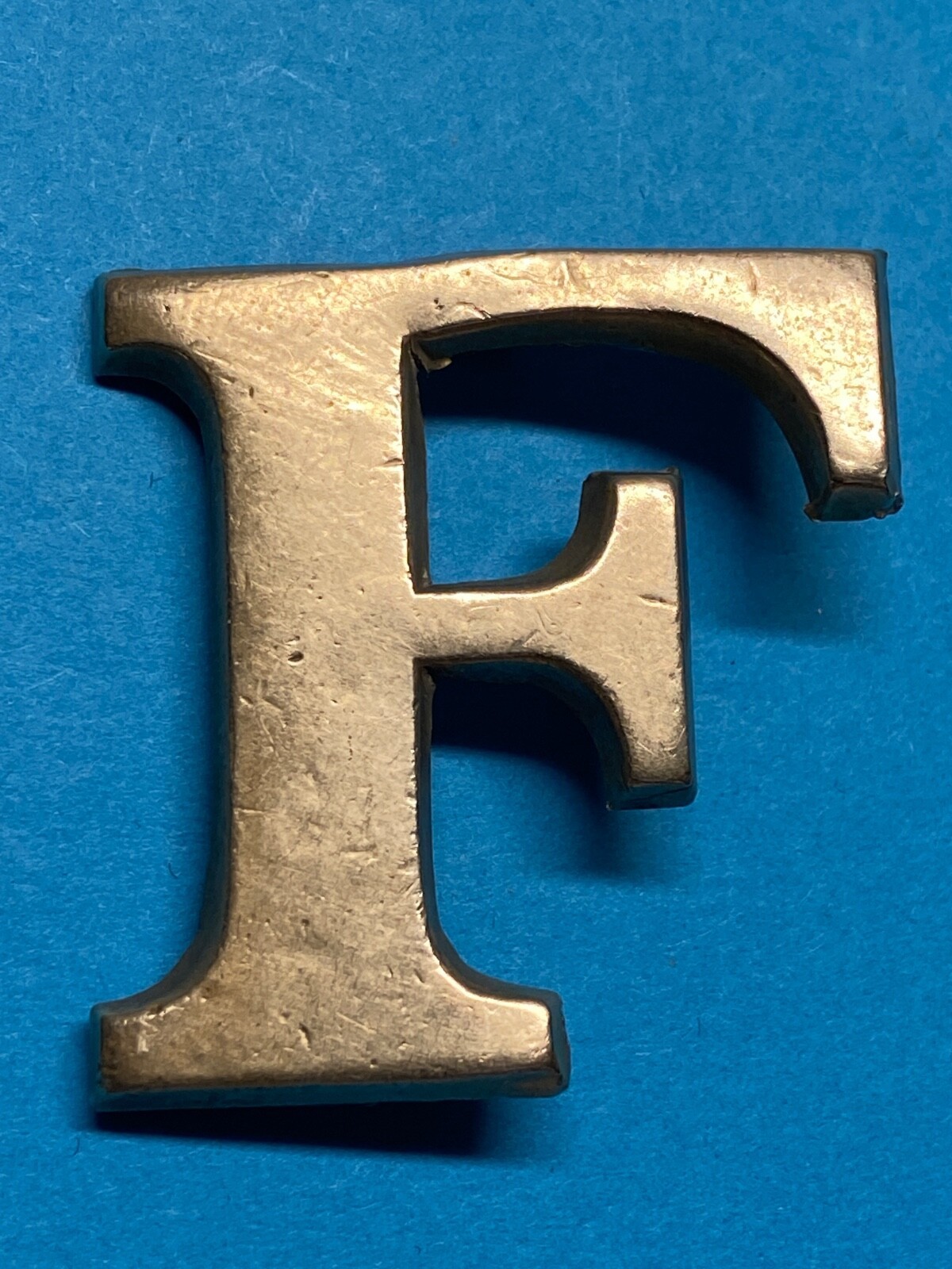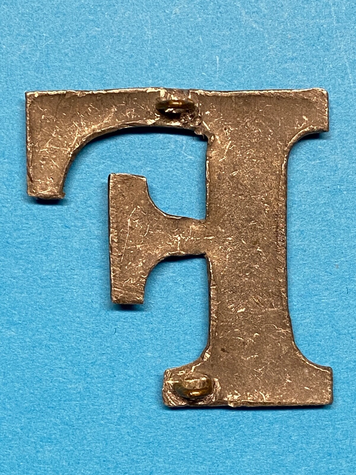 - U.S. ARMY, M1858, F COMPANY, LETTER, SILVER, INFANTRY, LEAD FILLED, FOR KEPI