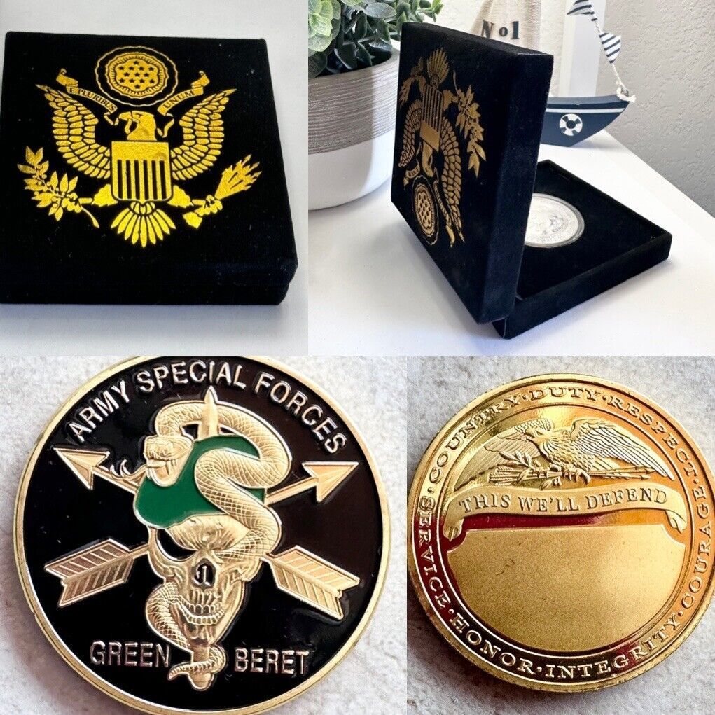 U.S. United States Army Special Forces Green Beret Challenge Coin w/ velvet case