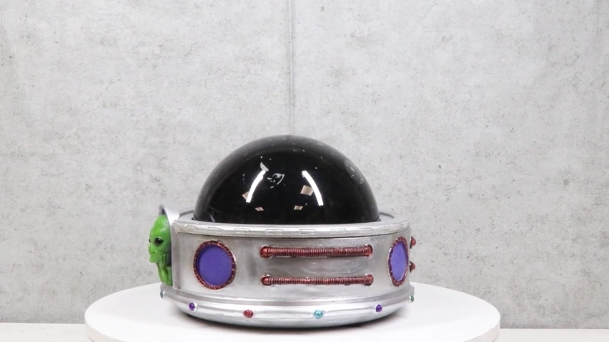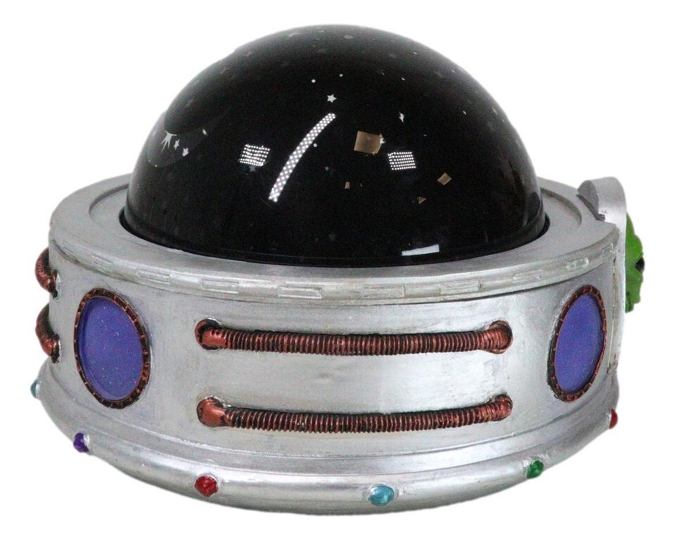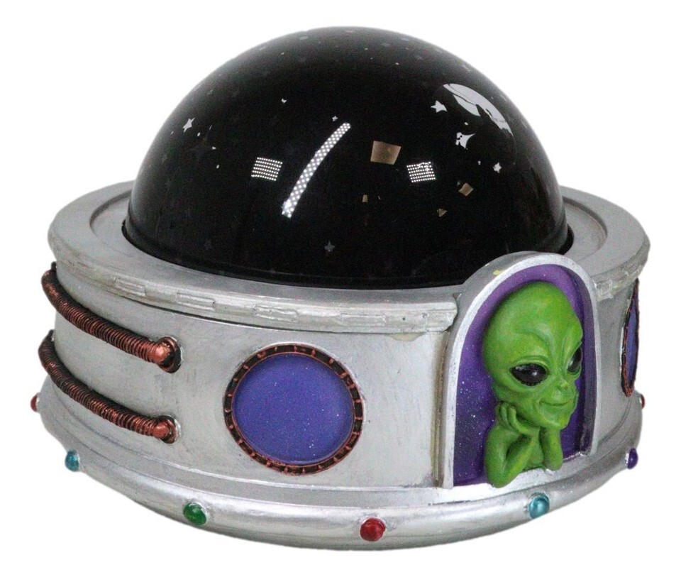 ? This UFO Alien Projector Night Light is made of polyresin, hand painted and polished individually.