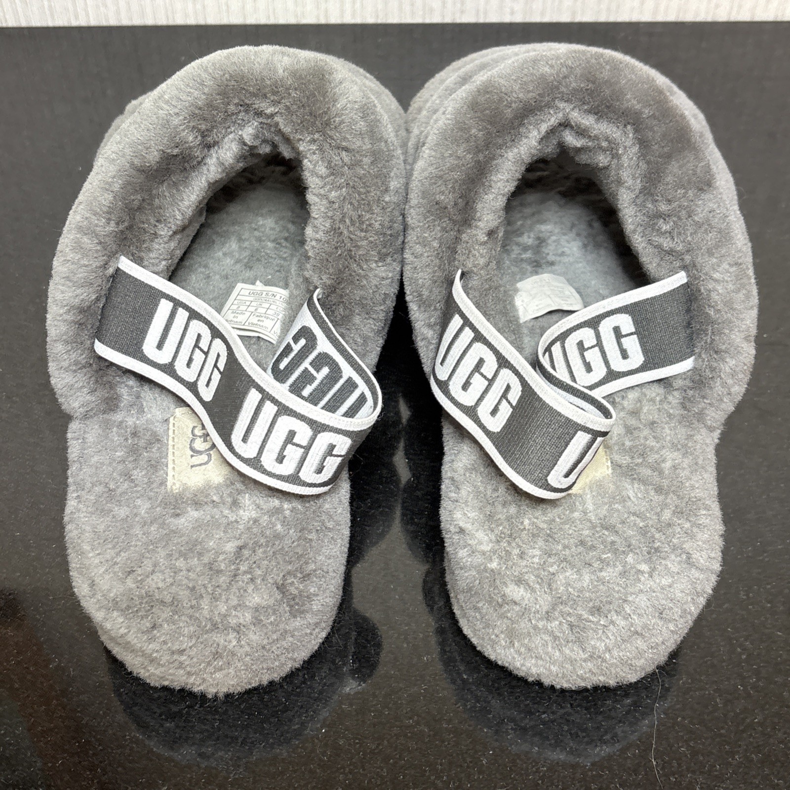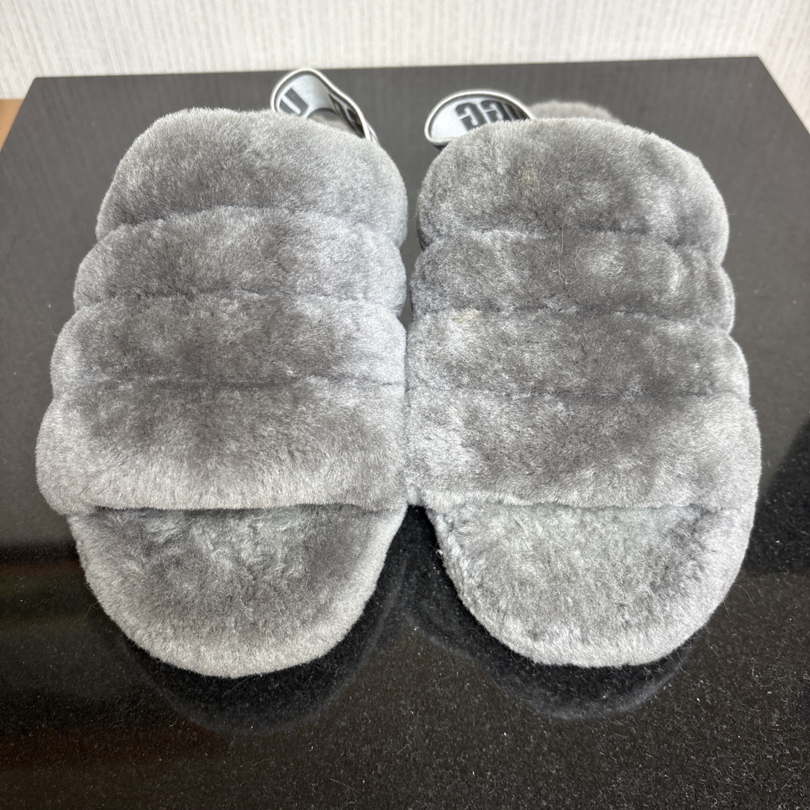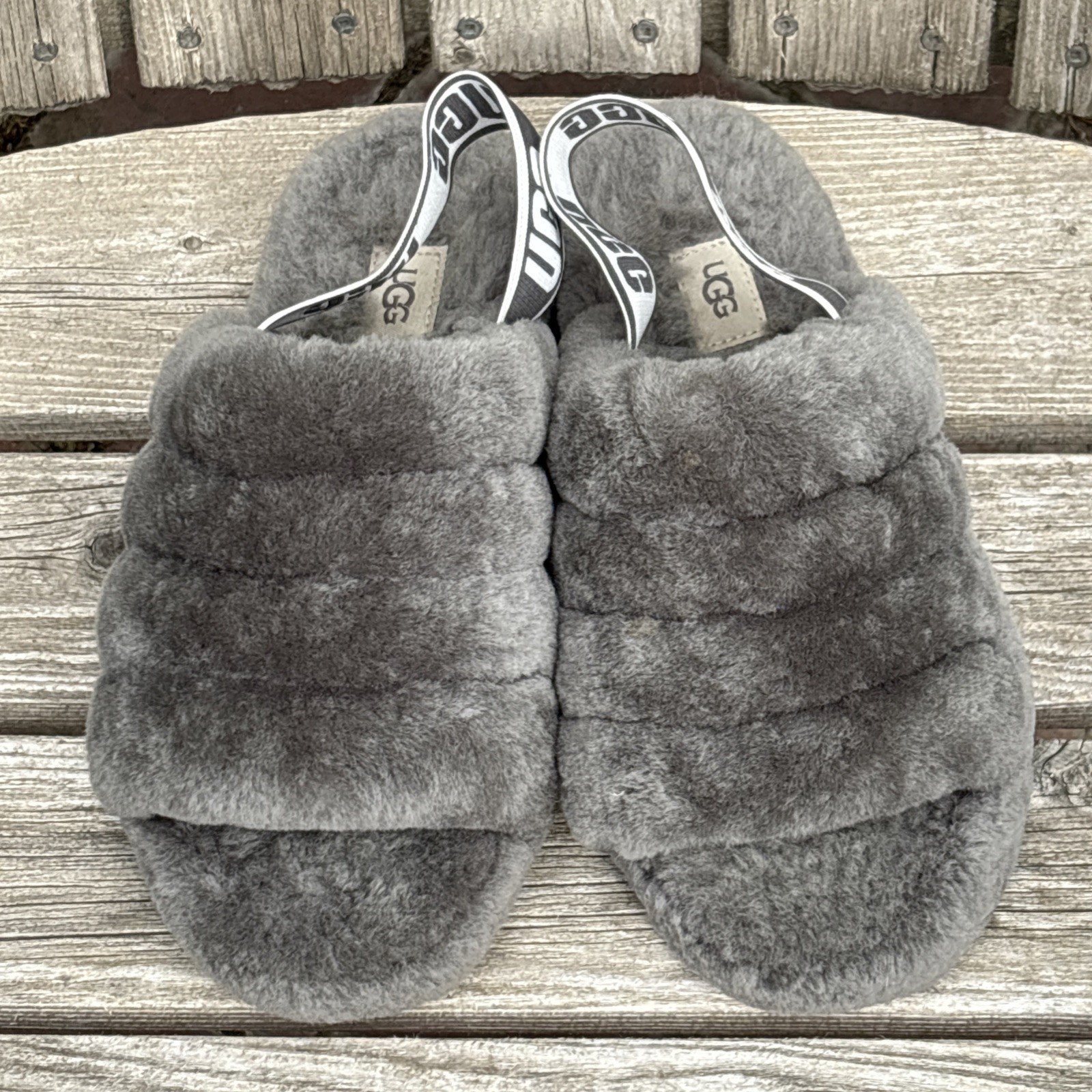 - UGG Fluff Yeah Slippers Womens Size 8 US Gray Fur Lined Sheepskin Slides 1095119