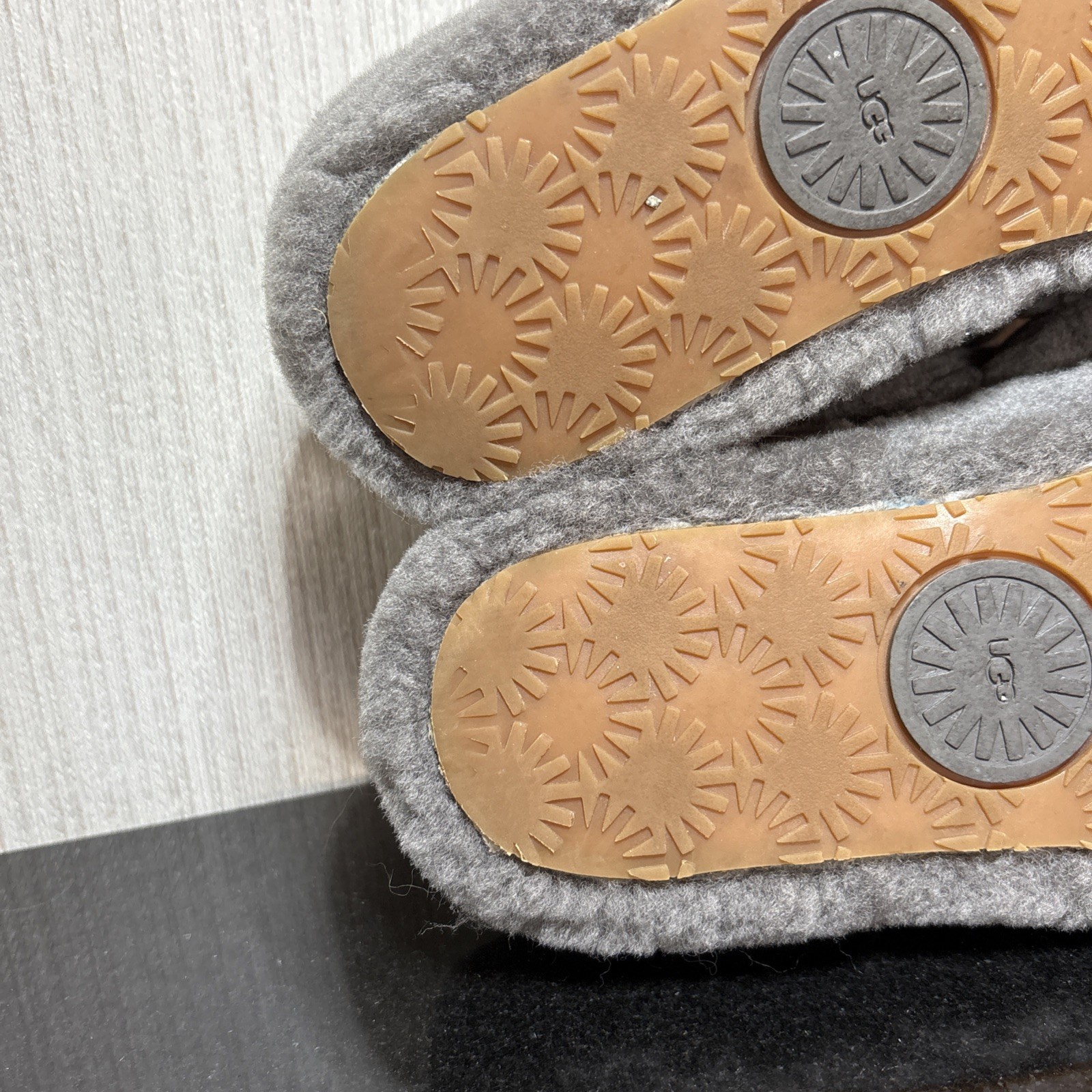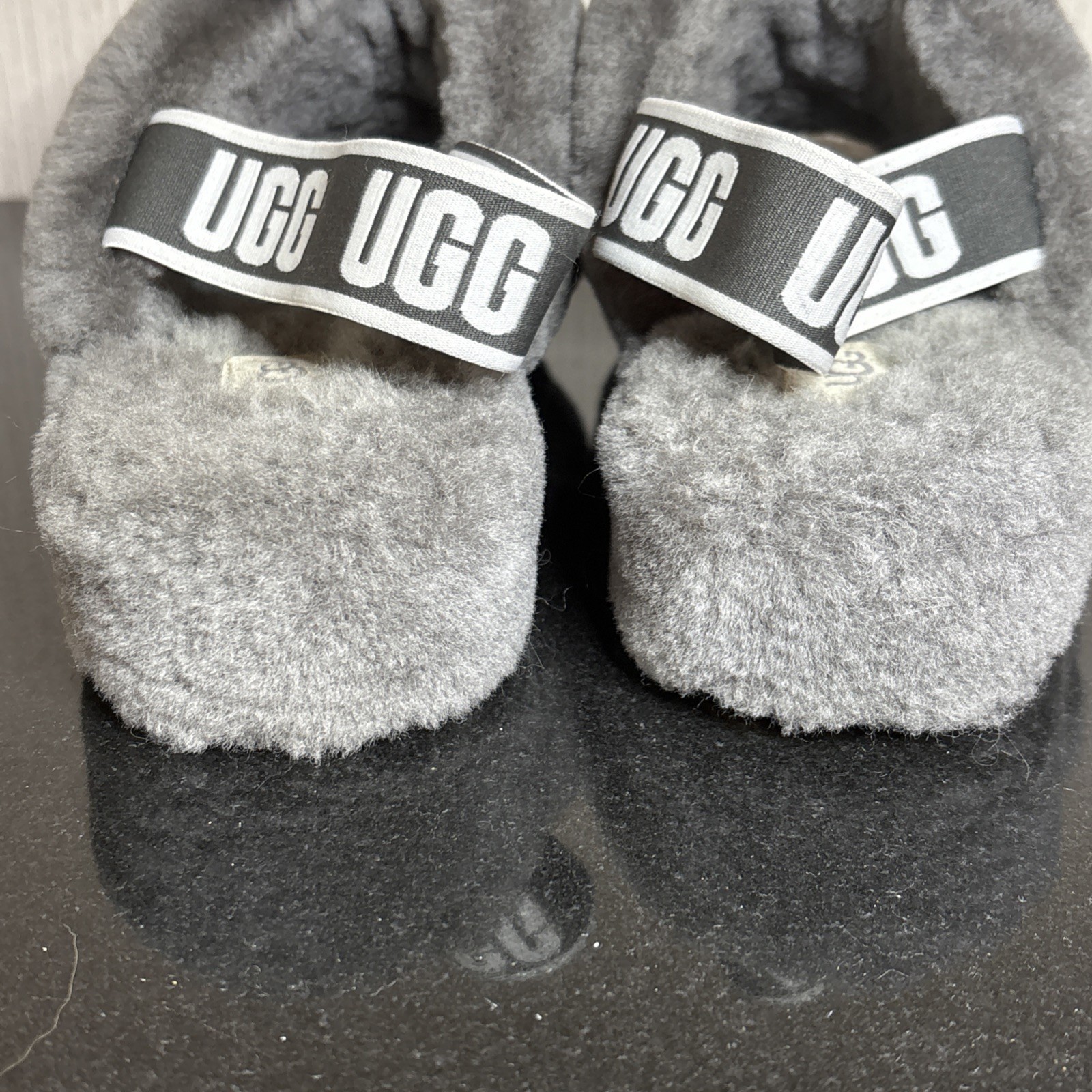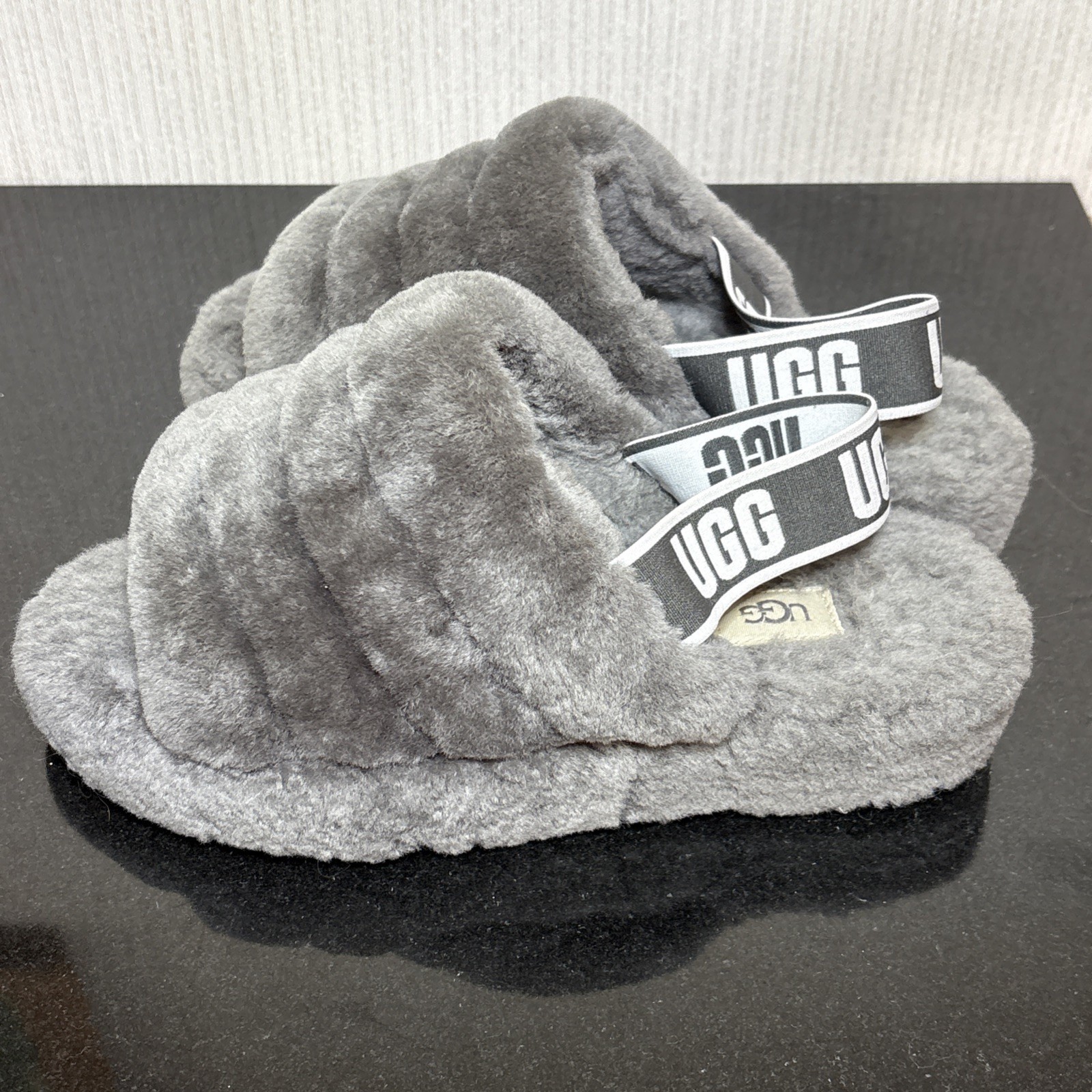 - UGG Fluff Yeah Slippers Womens Size 8 US Gray Fur Lined Sheepskin Slides 1095119