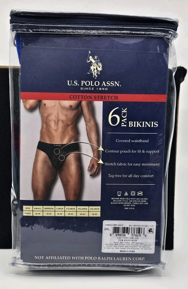 - US Polo Assn 6 Pack Bikinis Mens Underwear No Fly Cotton Stretch 2XL 44-46