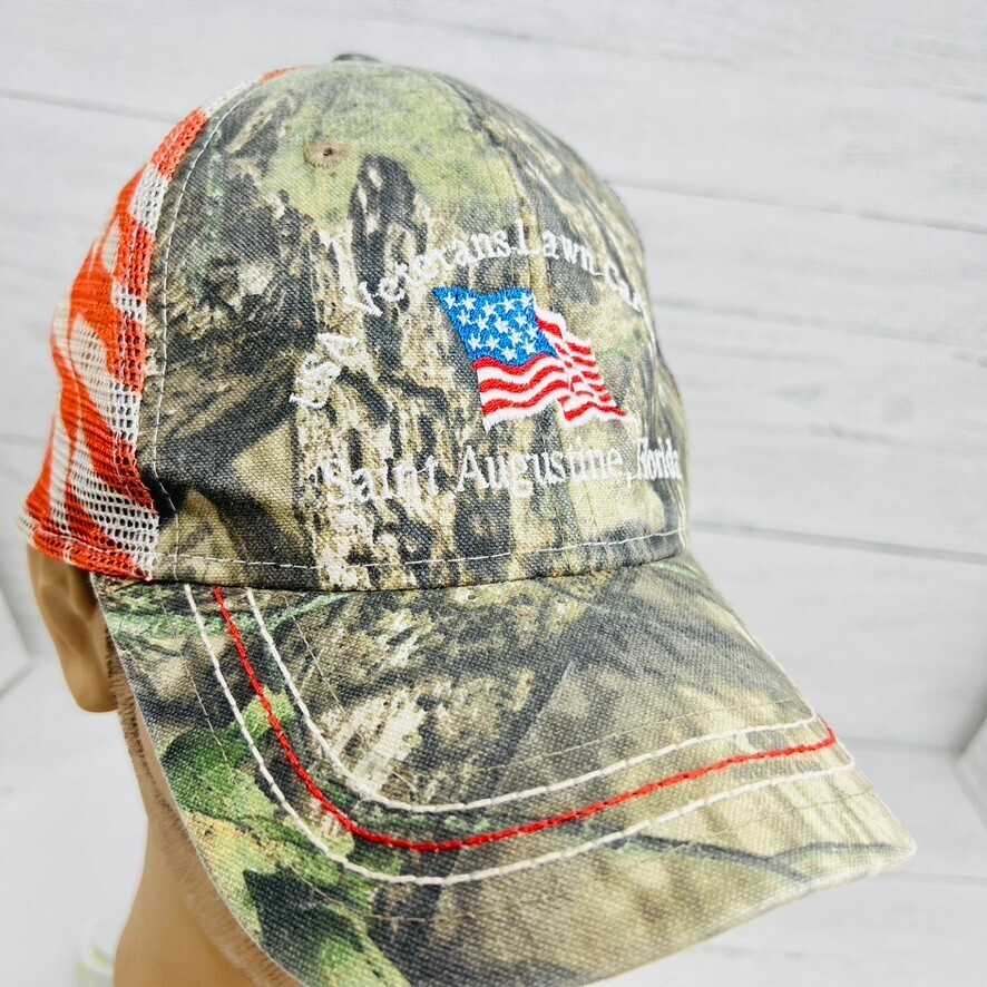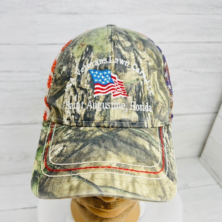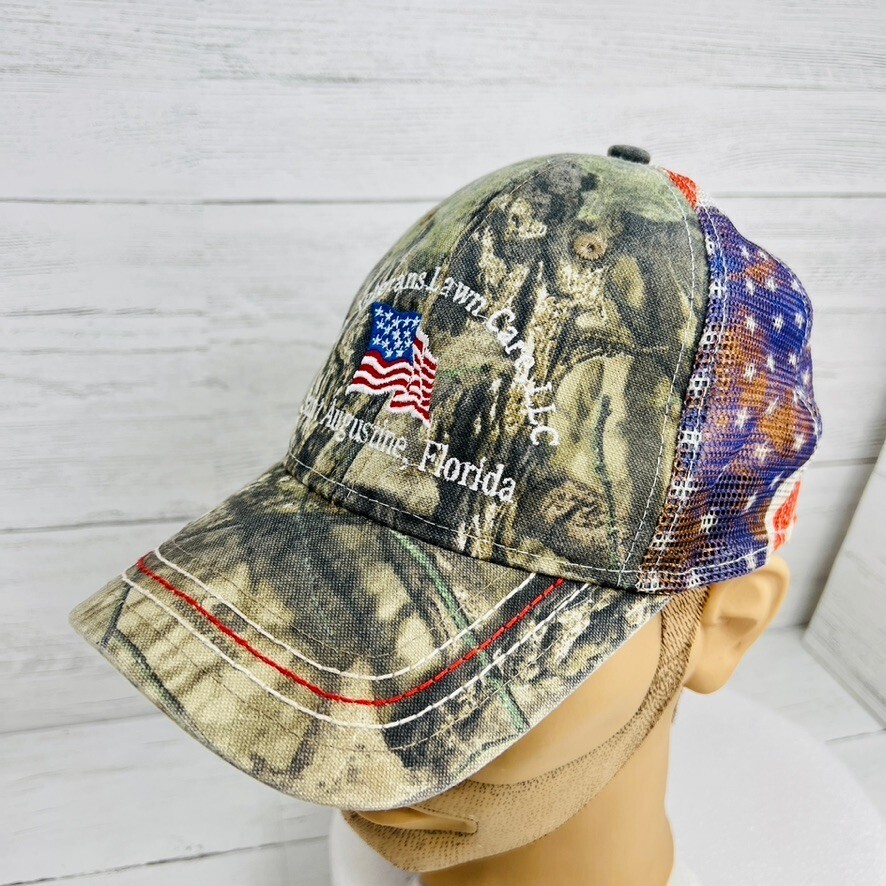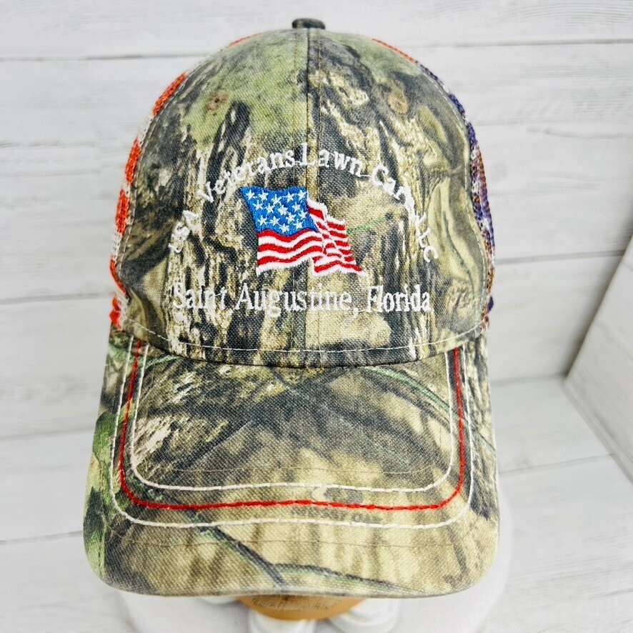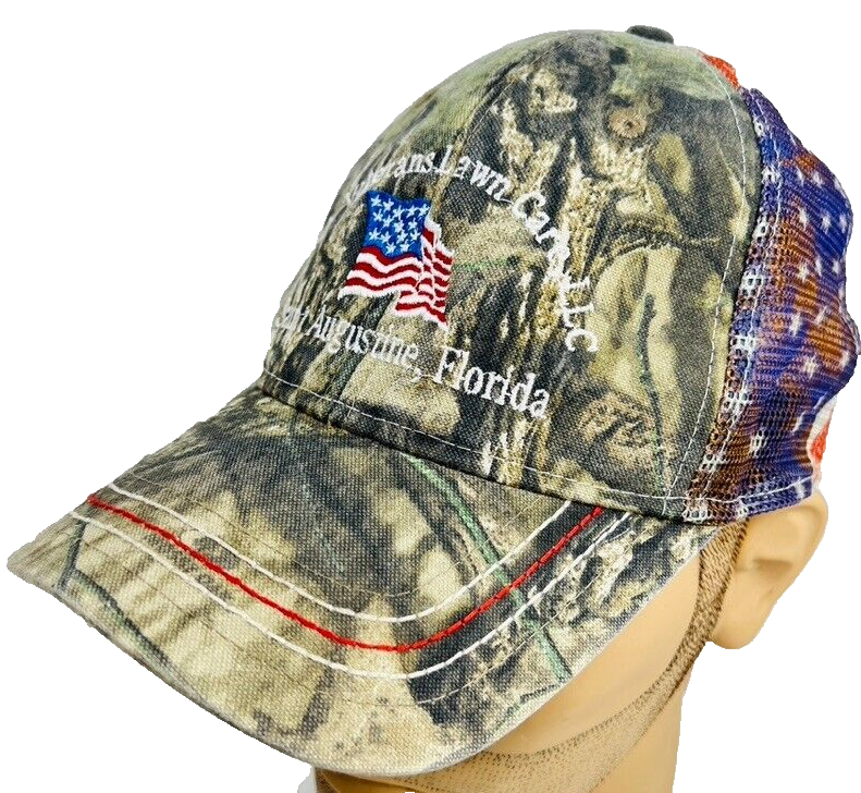 - USA Veterans Lawn Care Basejball Hat American Flag Mesh Back St Augustine Fl