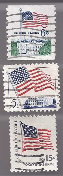 This is a set of 3 stamps from The United States of America featuring the American Flag, 3 varieties.