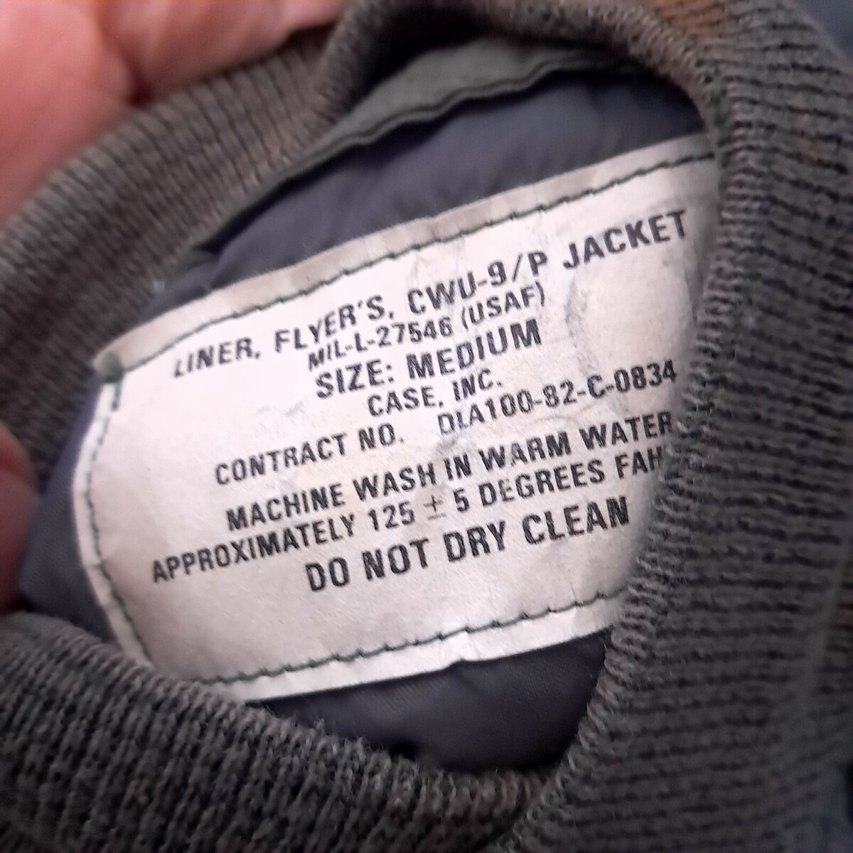 - USAF Air Force Flyers CWU-9/P Quilted Jacket Liner Medium Green Vintage Military