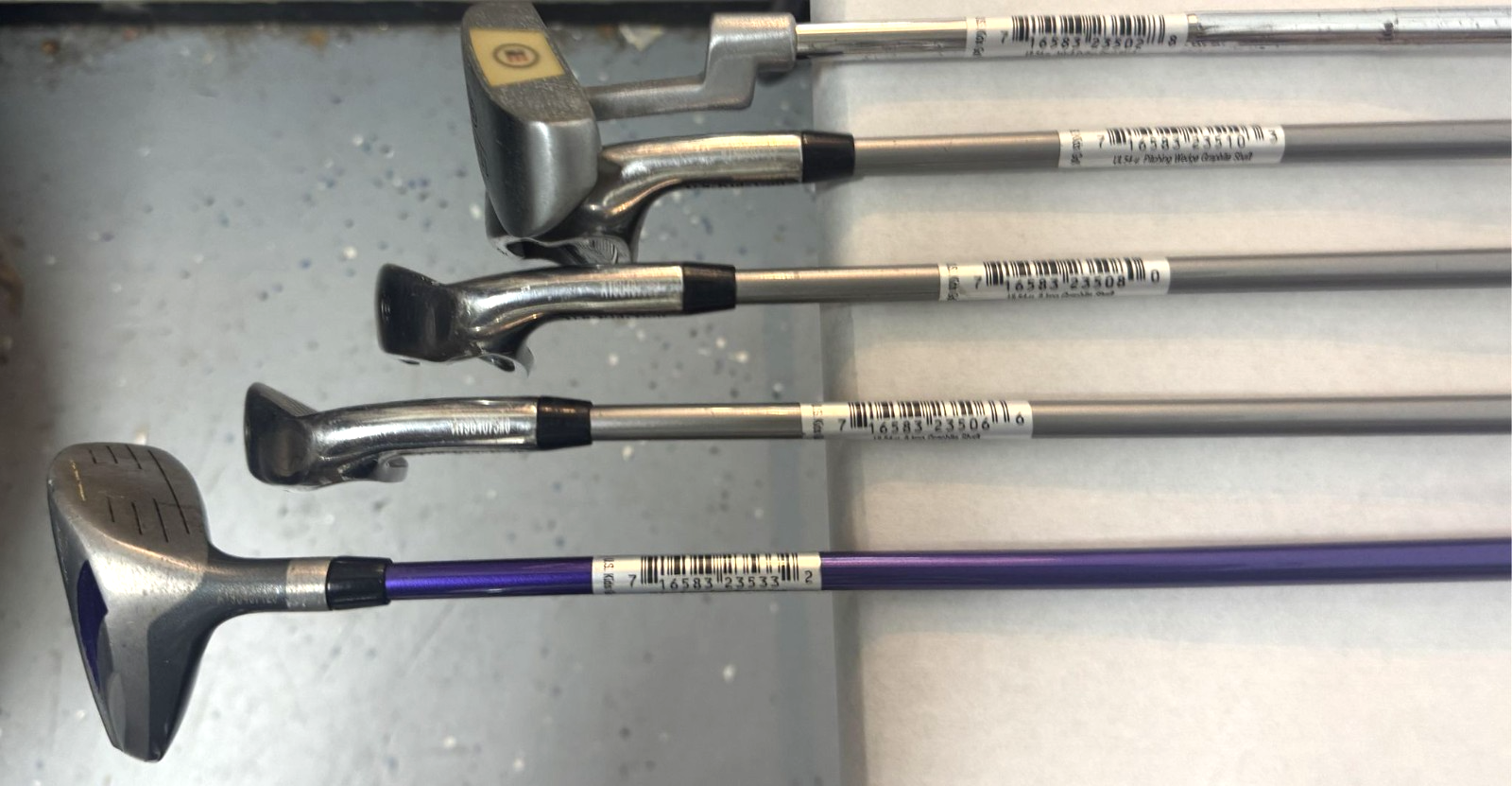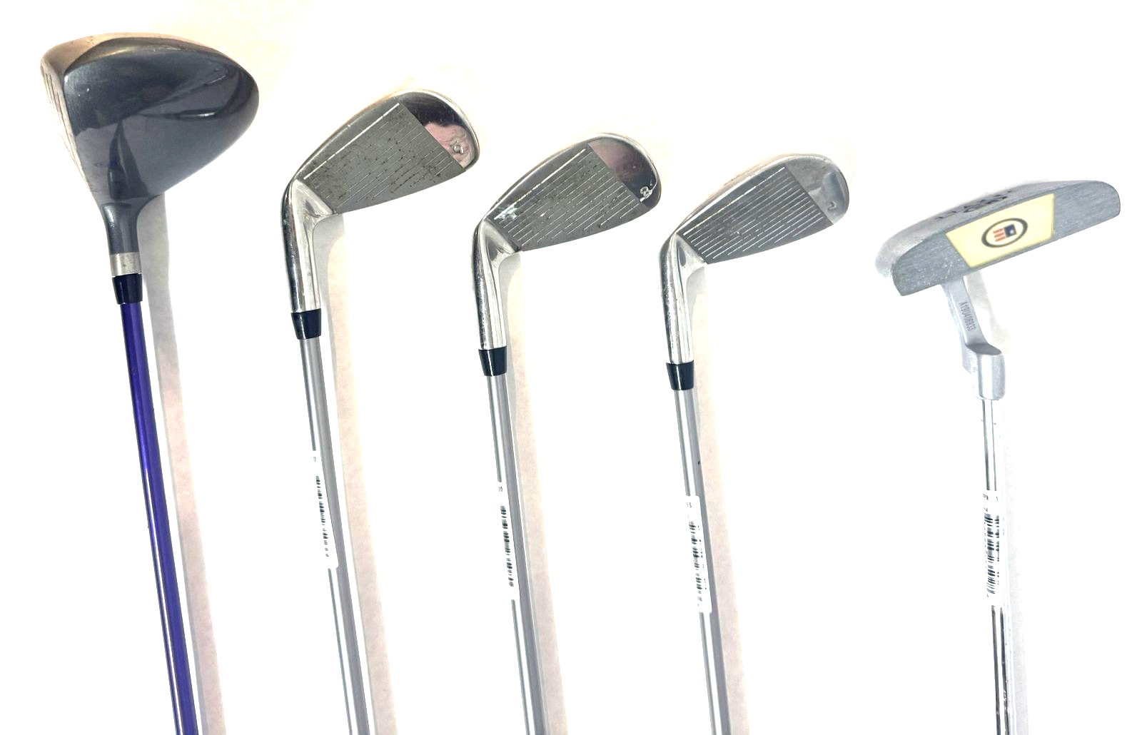 Set consists of Fairway Driver, 6-iron, 8-iron, PW and Putter