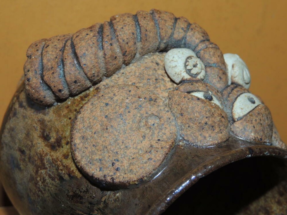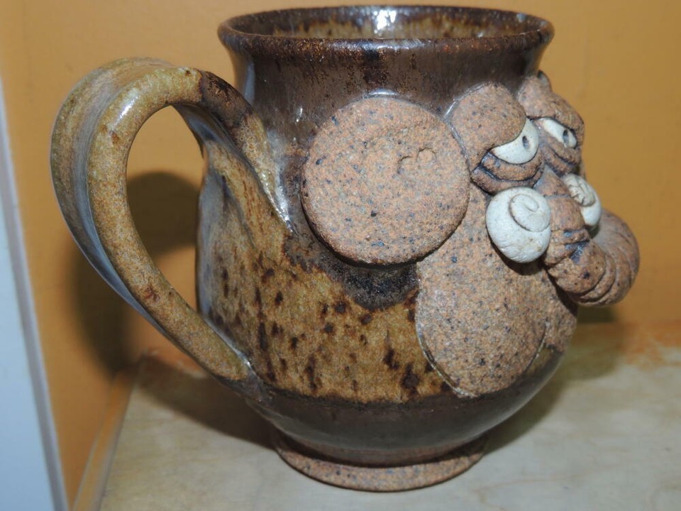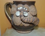- Ugly Face Elephant Mug 4.5"+ signed handmade stoneware pottery mammoth Vintage