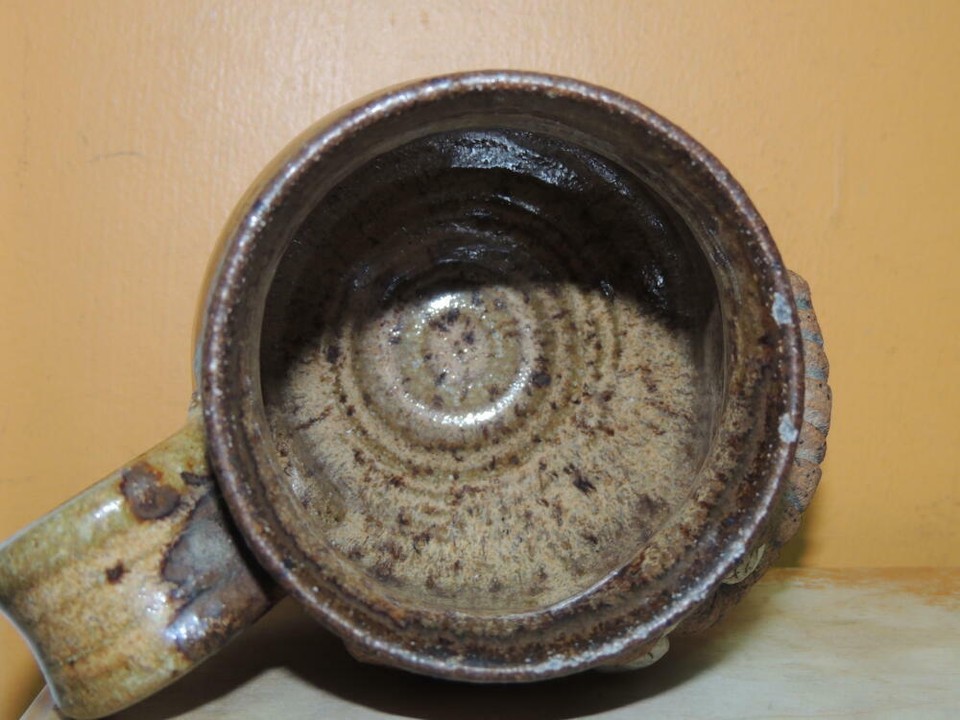 Ugly Face Elephant Mug 4.5"+ signed handmade stoneware pottery mammoth Vintage