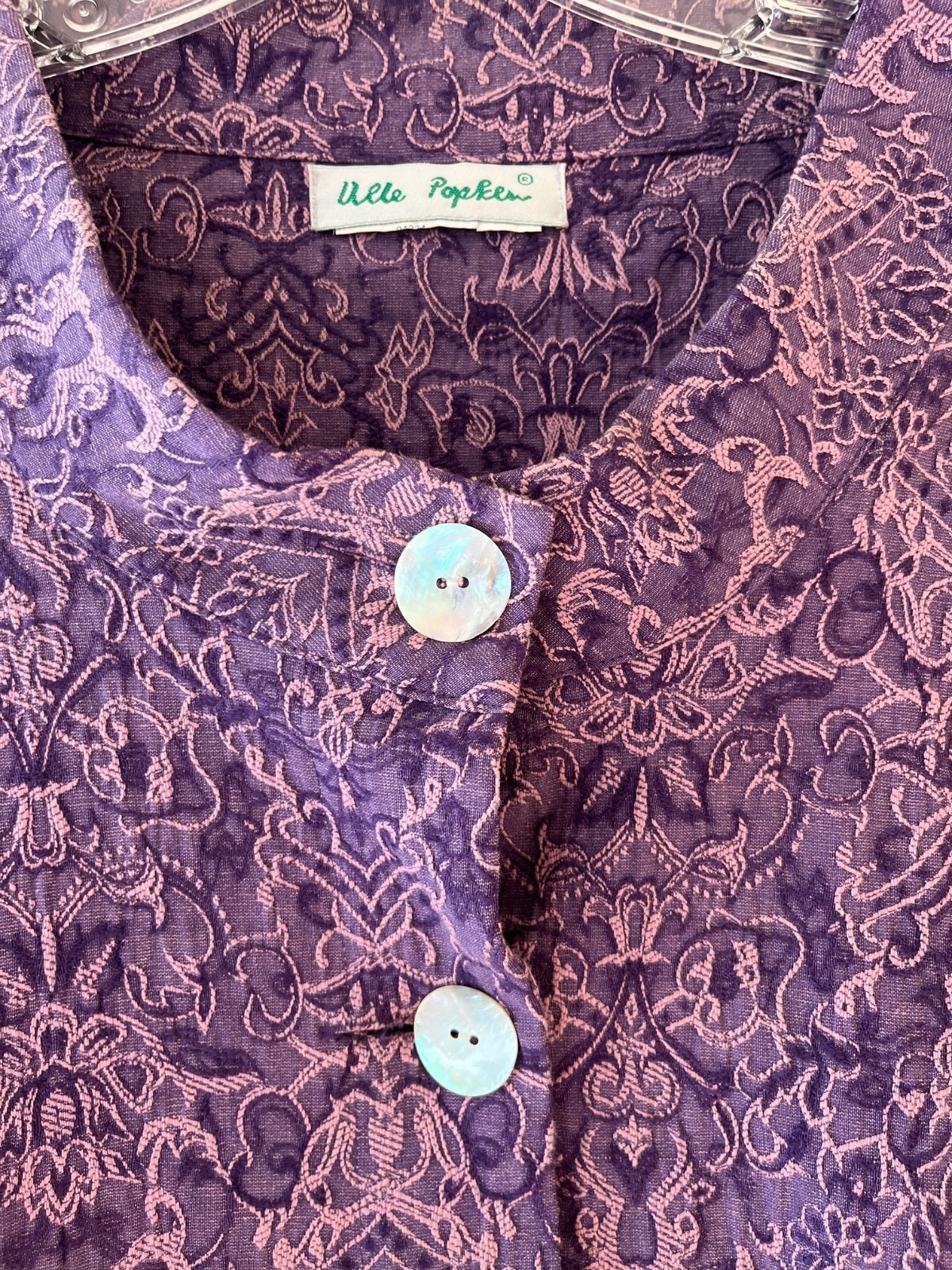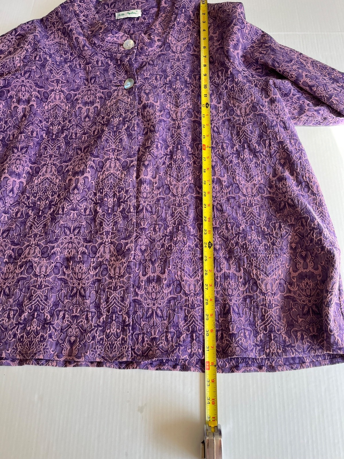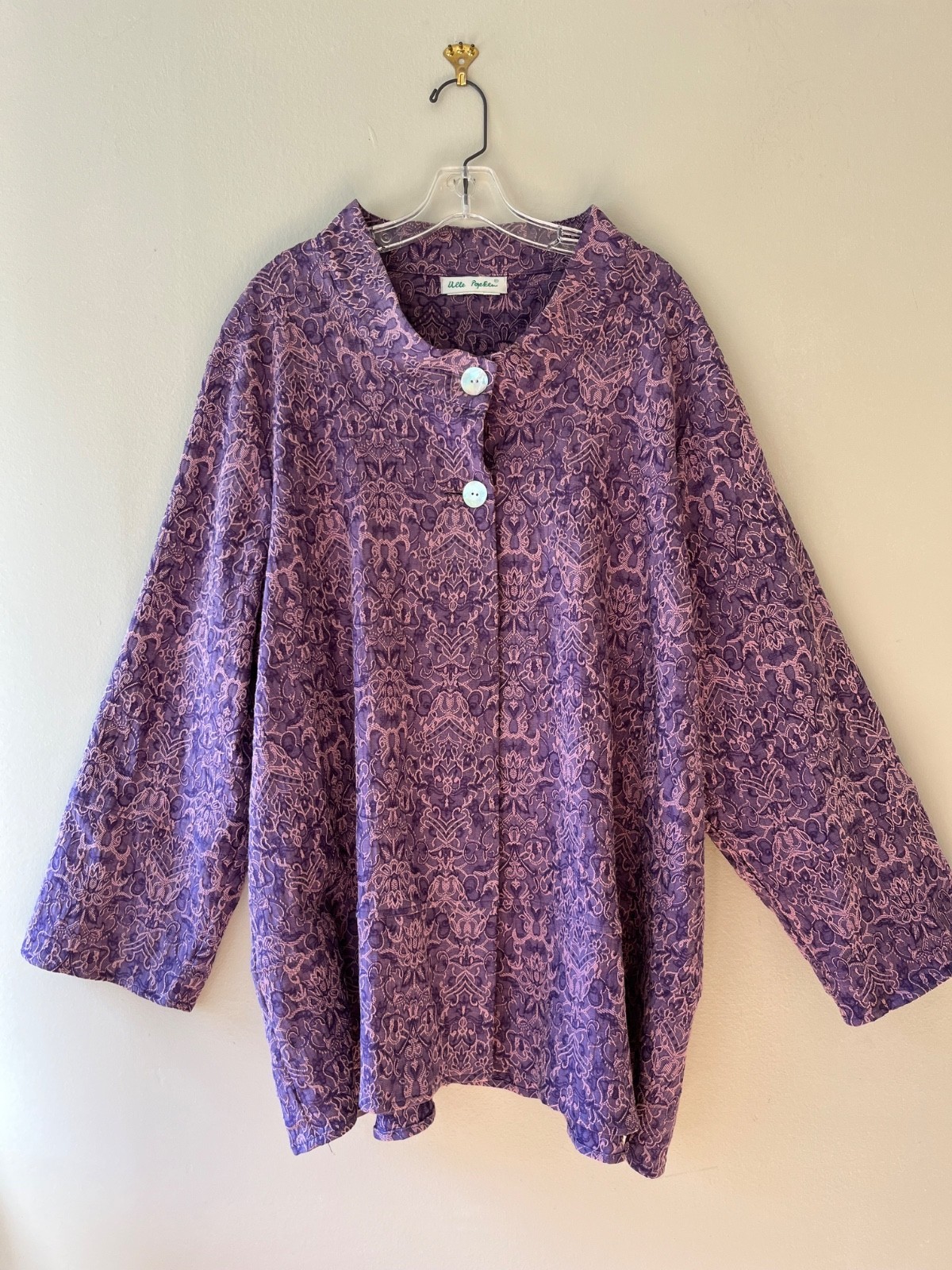 - Ulla Popken Sz XXL Purple Mosaic Texture Longline Jacket Pearl Buttons VTG
