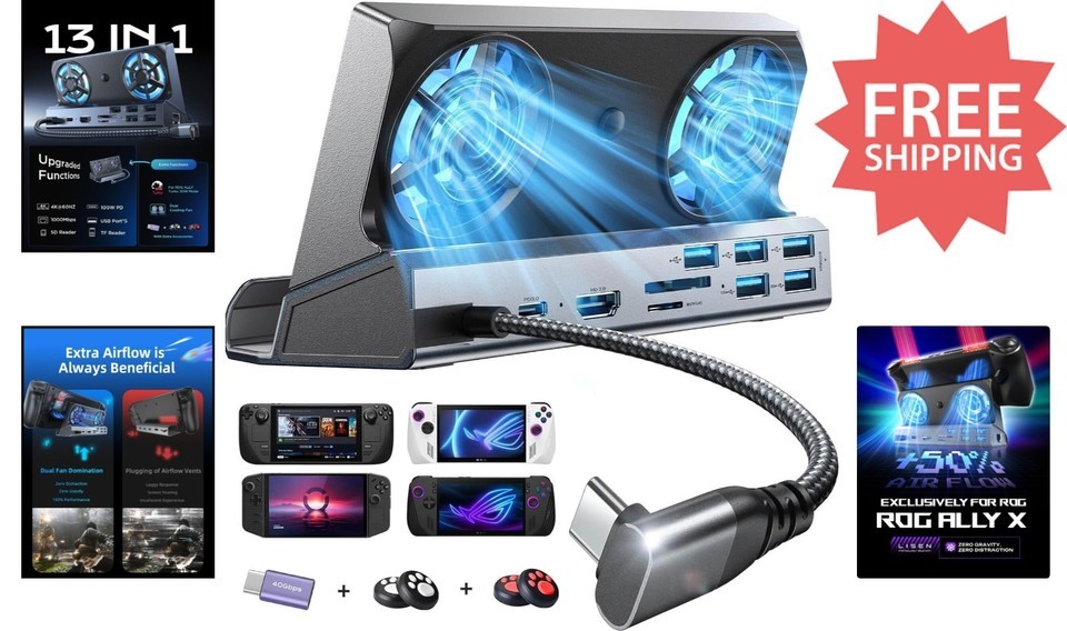 - Ultimate 10-in-1 Docking Station for Steam Deck & ROG Ally - 4K & Cooling Fans
