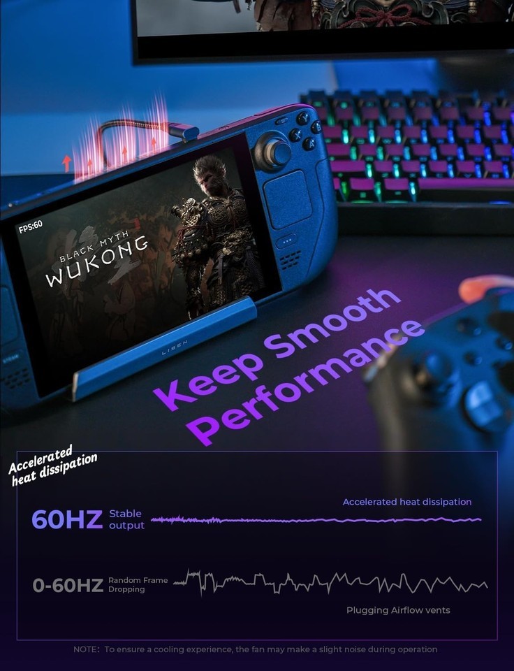 Enhance your gaming setup with the 13-IN-1 Steam Deck OLED Dock by LISEN. This versatile docking station transforms your Steam Deck OLED, ASUS ROG ALLY X, or Lenovo Legion Go's USB Type-C port into a powerful hub with 10 ports and 3 key features: HDMI 2.0 for stunning 4K@60Hz visuals, Gigabit Ethernet for fast wired internet, SD/TF card slots, multiple USB 3.0 and 2.0 ports, and a 100W USB-C PD for rapid charging. Equipped with dual cooling fans, it ensures optimal heat dissipation for extended gaming sessions, preventing overheating and system crashes. The package includes a 40Gbps extension adapter and 4 grip caps for enhanced comfort and control. Enjoy high-quality visuals, reliable connectivity, and efficient heat management in one sleek device. Plus, LISEN stands behind its product with a 12- and a commitment to sustainability.