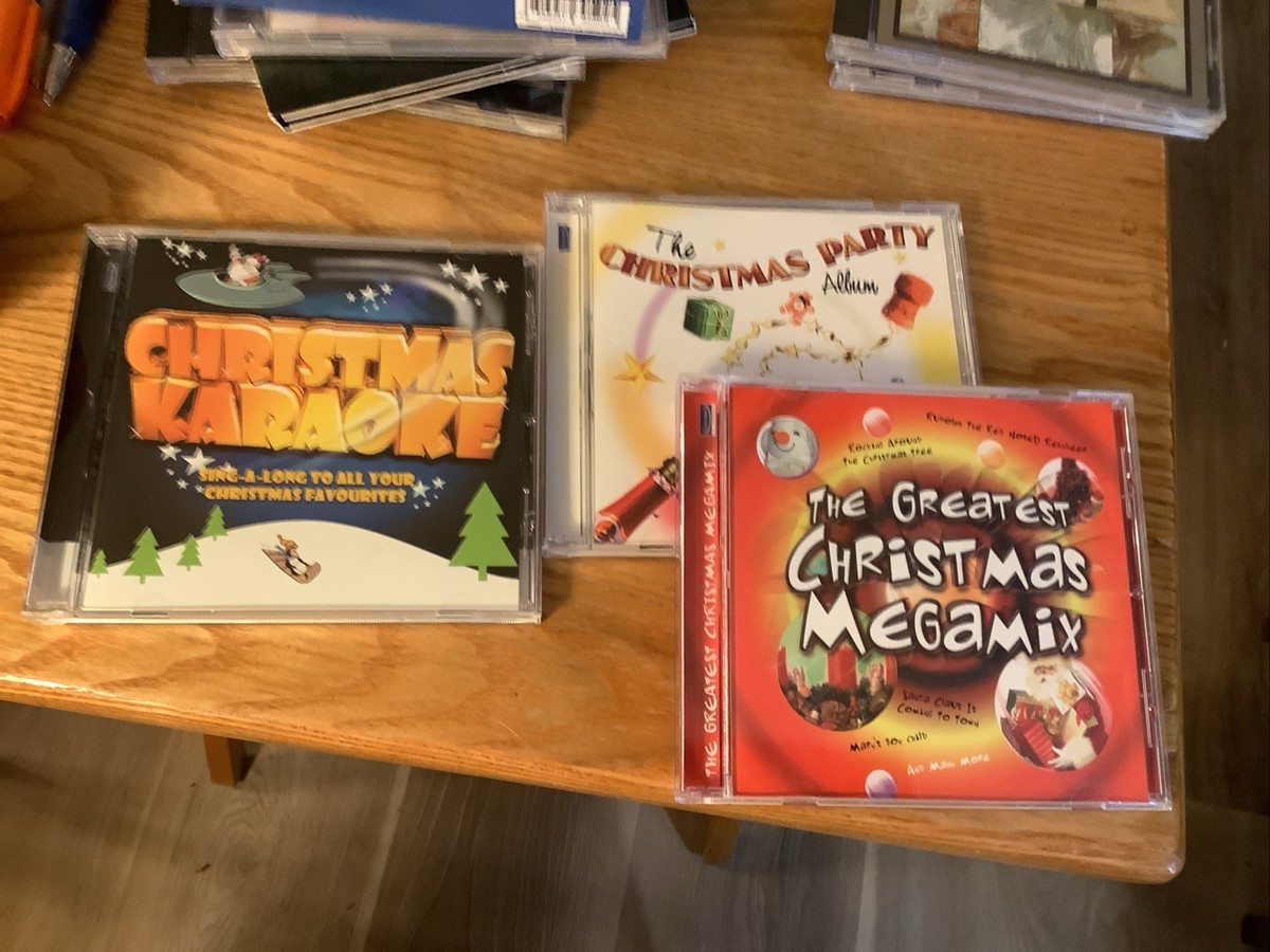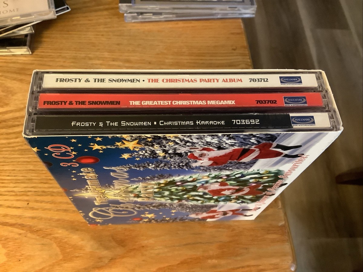 Three CD set of Christmas music by Frosty the Snowmen. Each CD is different-one has Christmas karaoke, one is a megamix and the 3rd a party album. See photos for songs. Very good condition-looks practically new! Feel free to email with questions. I do combine shipping on multiple items. Have a great day!
