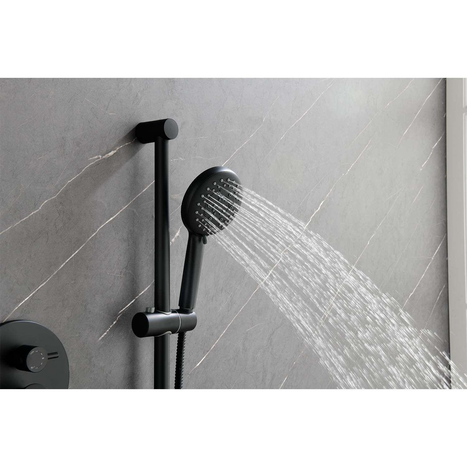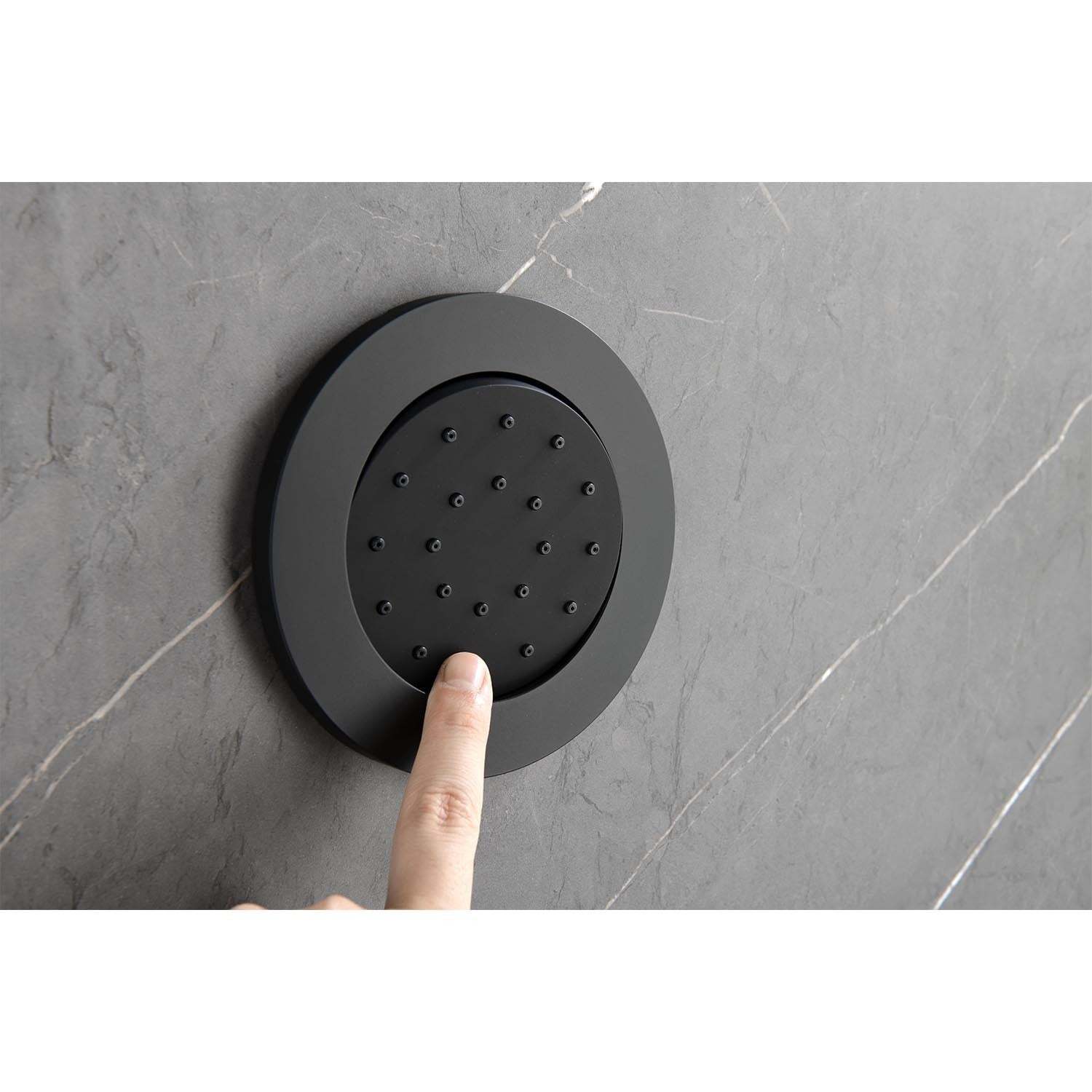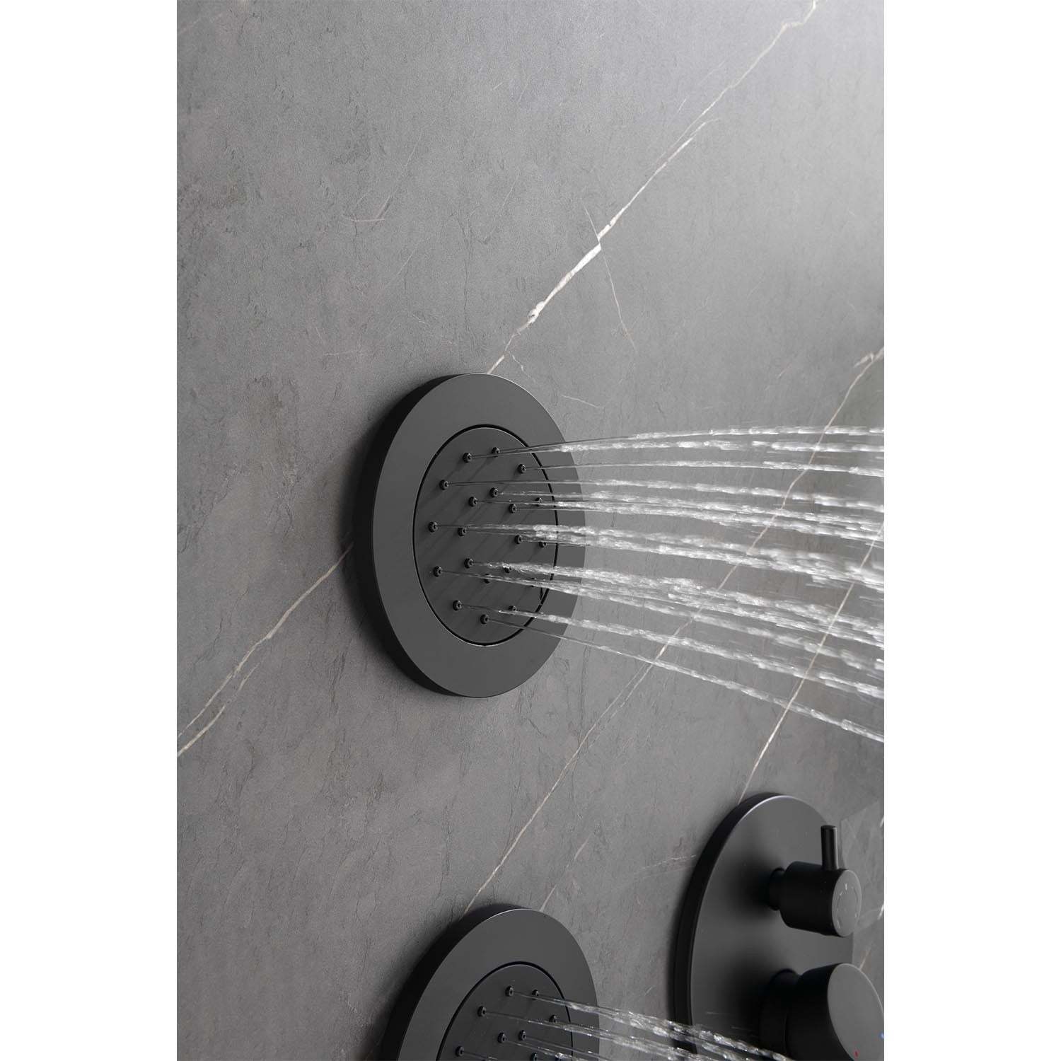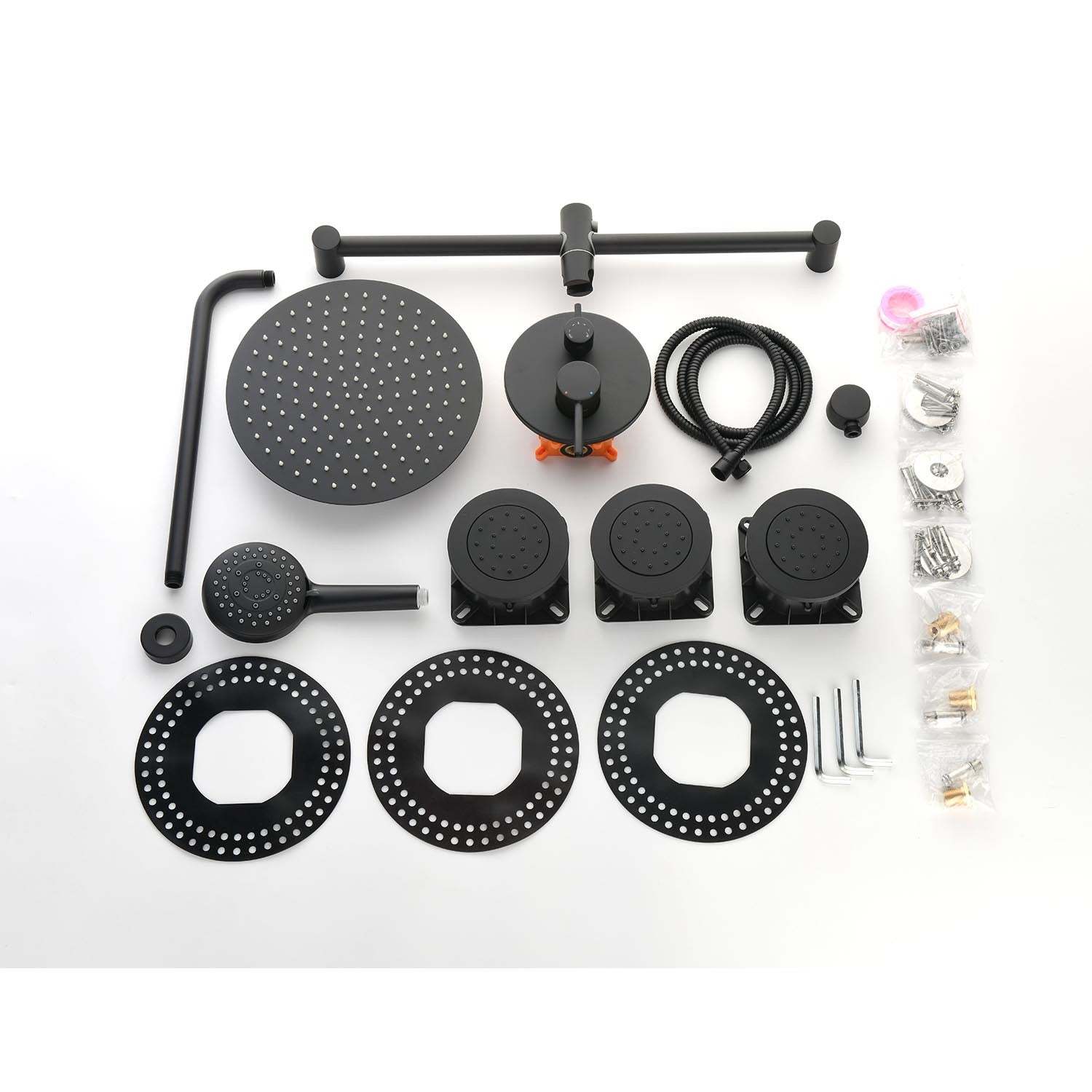 Installation method: wall-mounted.Includes: shower head, hand shower head, slider, body spray, 59-inch shower hose, water control valve, mounting hardware included.