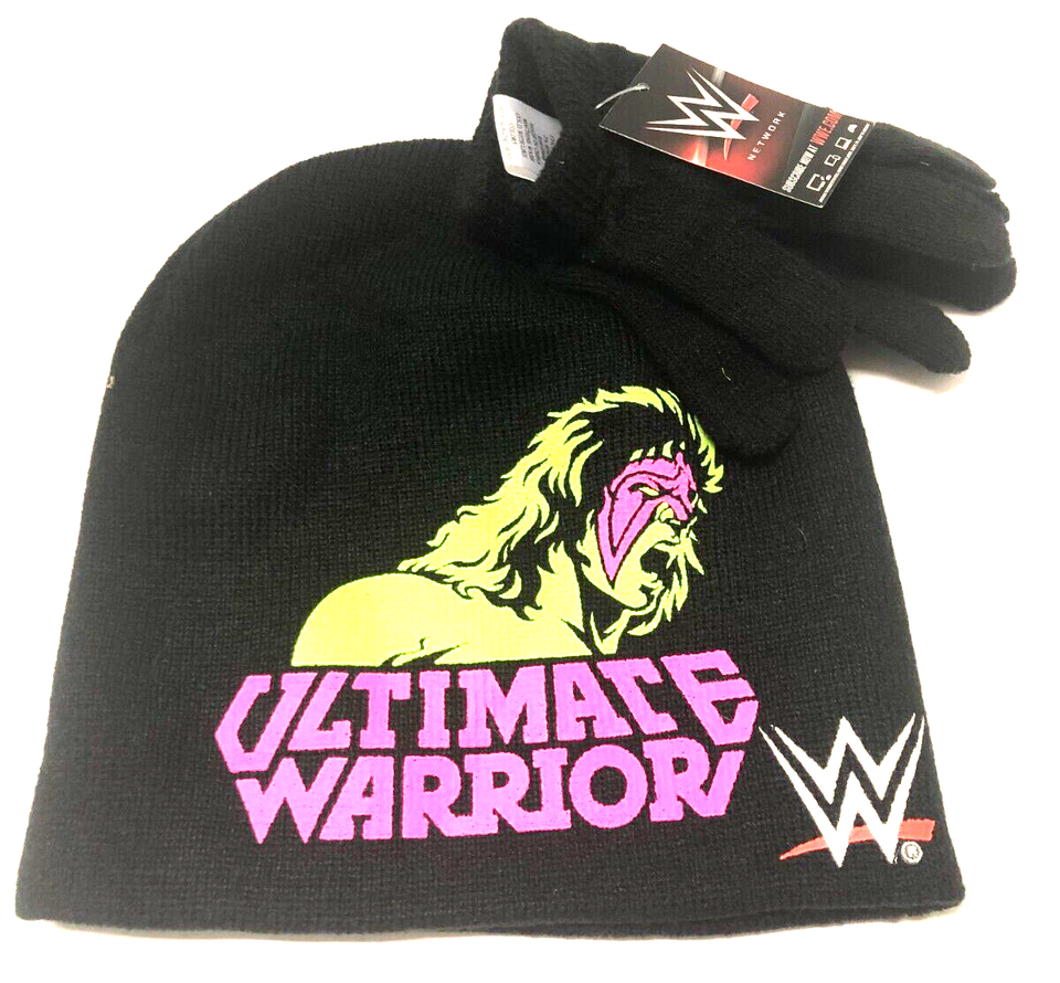- ULTIMATE WARRIOR Beanie Hat & Stretch Gloves WWE NEW