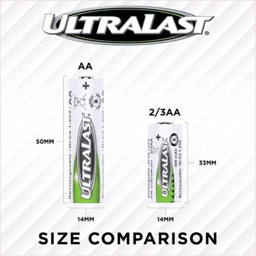 - ULTRALAST ULN423AASL 2/3AA Rechargeable Battery - NICAD 1.25V 400mAh, Compact