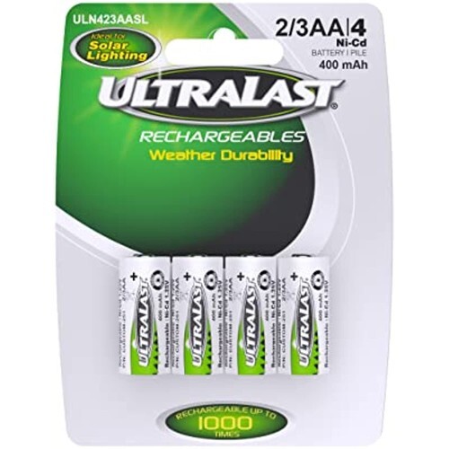 Maximize the output of your solar lights with the ULTRALAST ULN423AASL 2/3AA Rechargeable Battery.