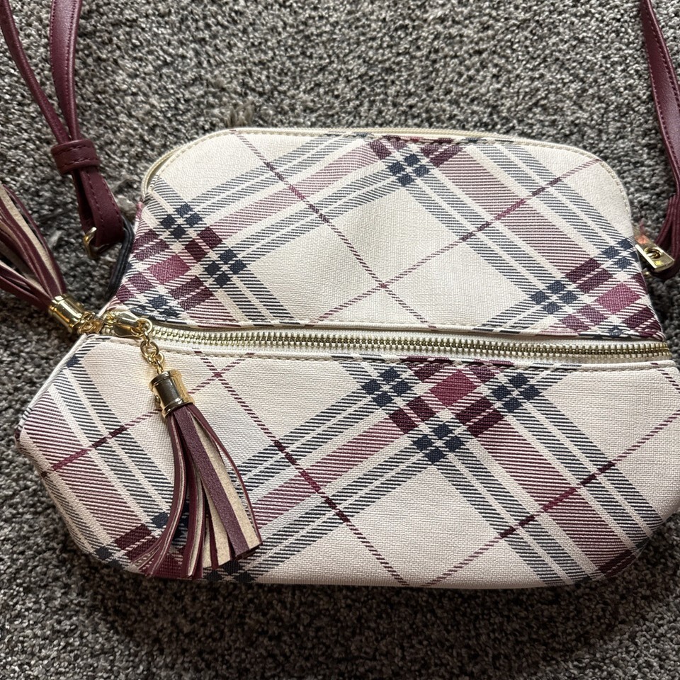 Unbranded 8”x11” Plaid Pattern Faux Leather Purse 5 Compartment
