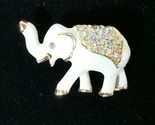Unbranded Vintage Gold Tone Elephant White Enamel Rhinestone Figural Brooch Pin