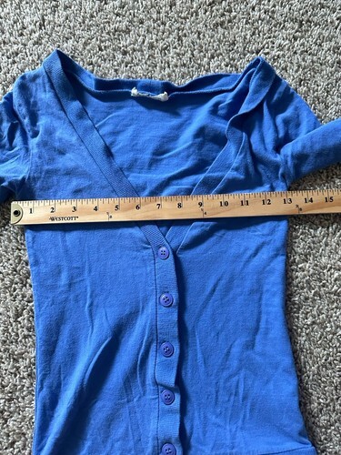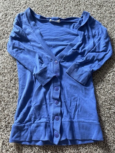 - Unbranded Women Blue Cardigan V-Neck Buttons 3/4 Sleeve Size Small Light Weight