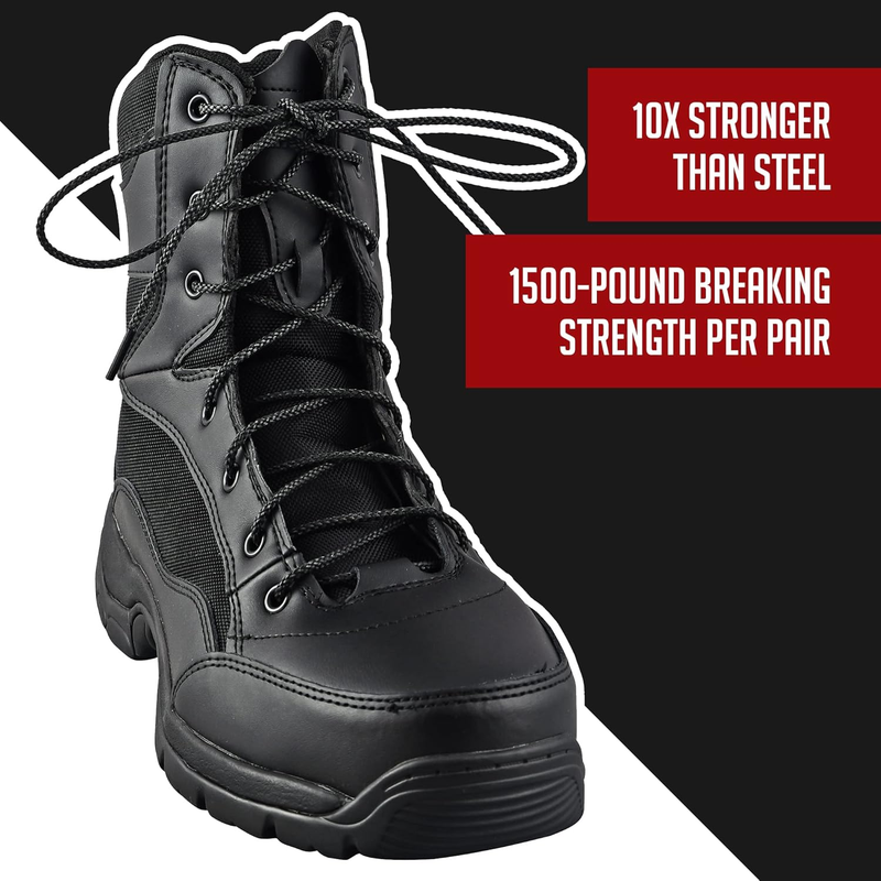 Unbreakable round Bootlaces - Indestructible, Waterproof Fire Resistant Laces, 1500-Pound Breaking Strength/Pair