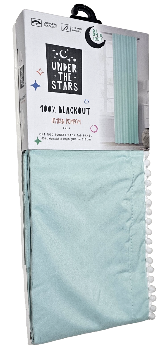 - Under The Stars 100% Blackout Hayden Pompom Aqua 84 In. Length