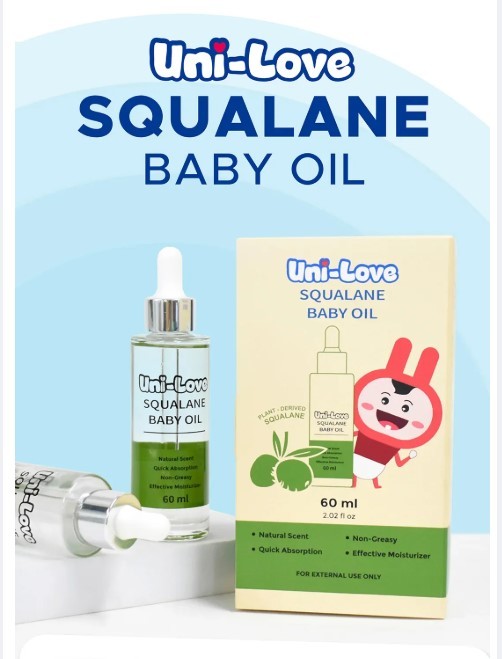 Uni-love Squalane Baby Oil 60 ml is your baby's paraben-free and dye-free moisturizer. With its plant-derived squalane, help keep your baby's skin hydrated and moisturized.
