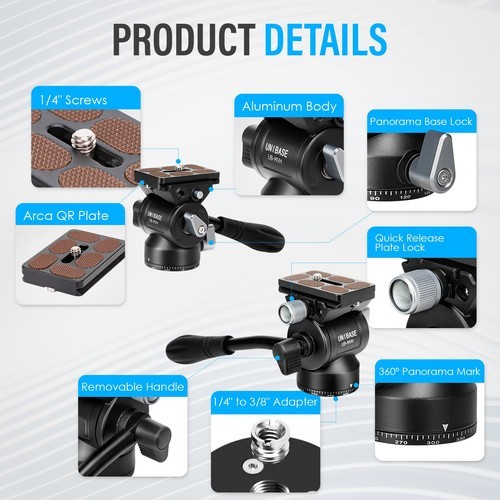 - Unibase Video Fluid Head Tripod Pan Tilt with Arca Swiss Quick Release Plate