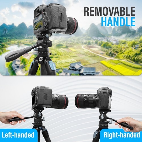 Smooth Panoramic ViewExperience unparalleled smoothness in your videography with our fluid head, designed for effortless 360 panoramic panning and -70to +90 tilting. With the ability to smoothly panning and tilting, you have complete control over your camera's movements, allowing for seamless transitions and precise framing. Panning/tilting tension is consistent, not variable.)