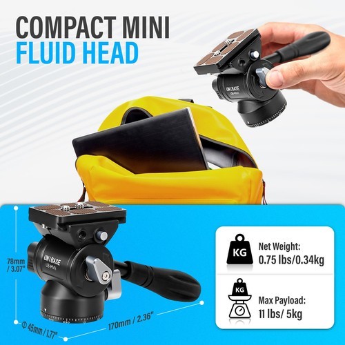 Portable Fluid HeadThis compact mini fluid head weighs only 340g and packed in a very compact size for your package. Incredibly convenient and easy to take along for travel or shooting mini videos without compromising on performance.