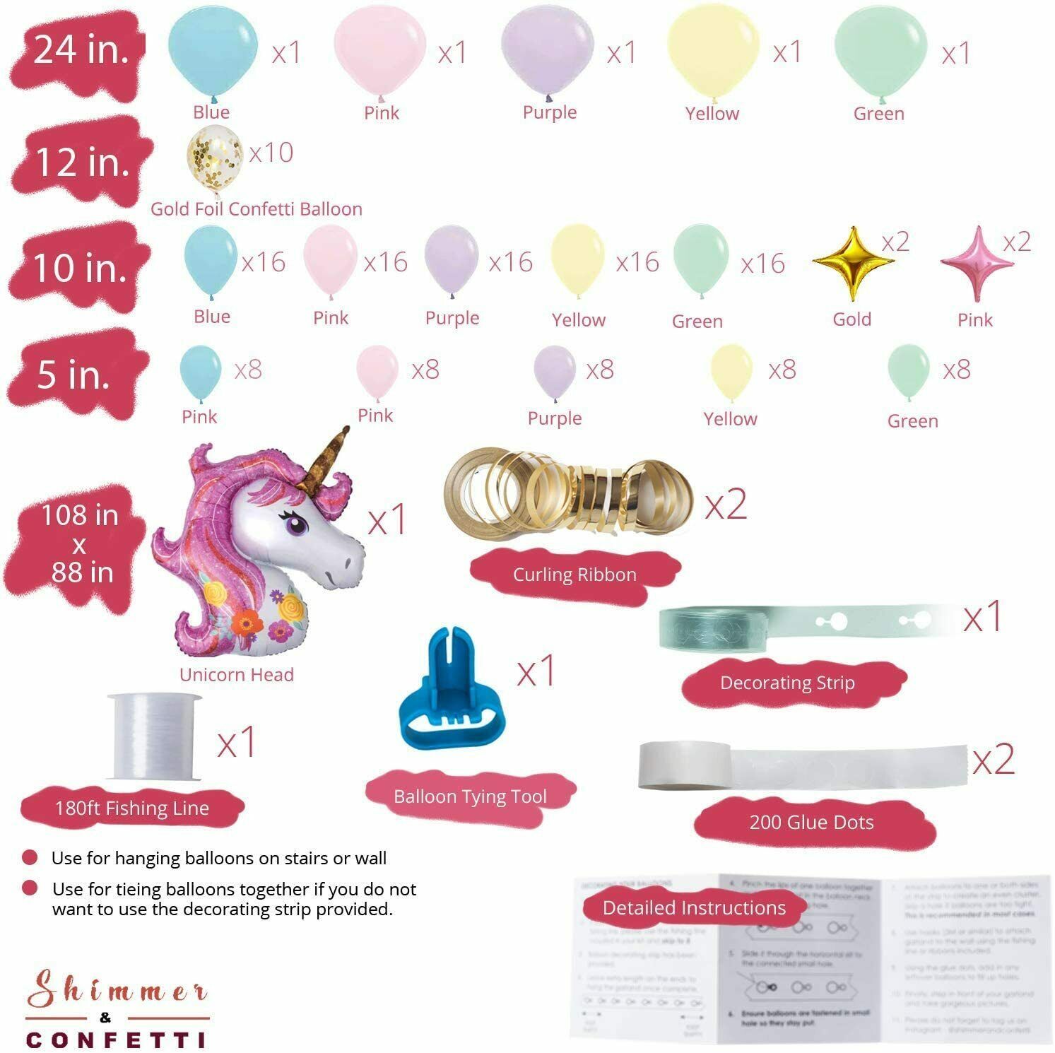 ???? TURN ANY PARTY MAGICAL - You no longer have to shop for individual decor for your pastel party. You'll receive everything you need to make a beautiful pastel unicorn-themed party in one pretty and reusable GIFT-READY box. 180-ft fishing line is also provided to tie your balloons together, if you do not wish to use the balloon decorating tape provided also in your kit. Remember to grab an electric pump it will help speed the process of setting up your garland.