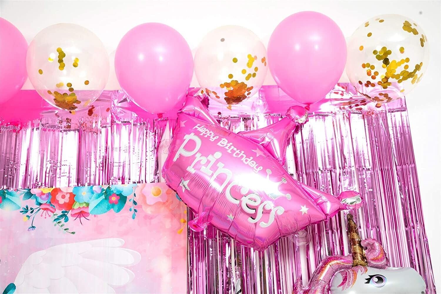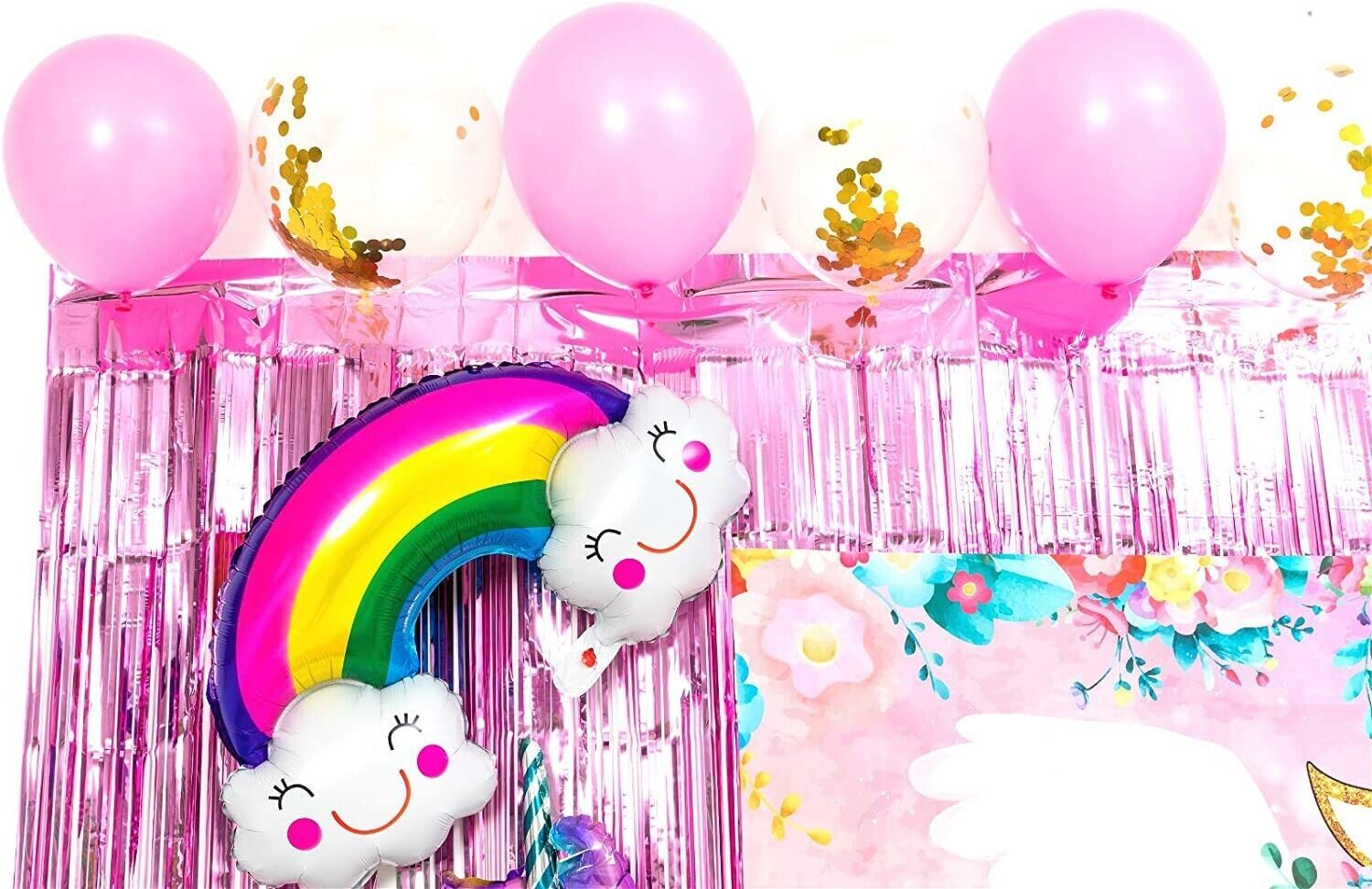 - Unicorn Party Decorations Girl Birthday Supplies Pink Curtains Balloons Banner
